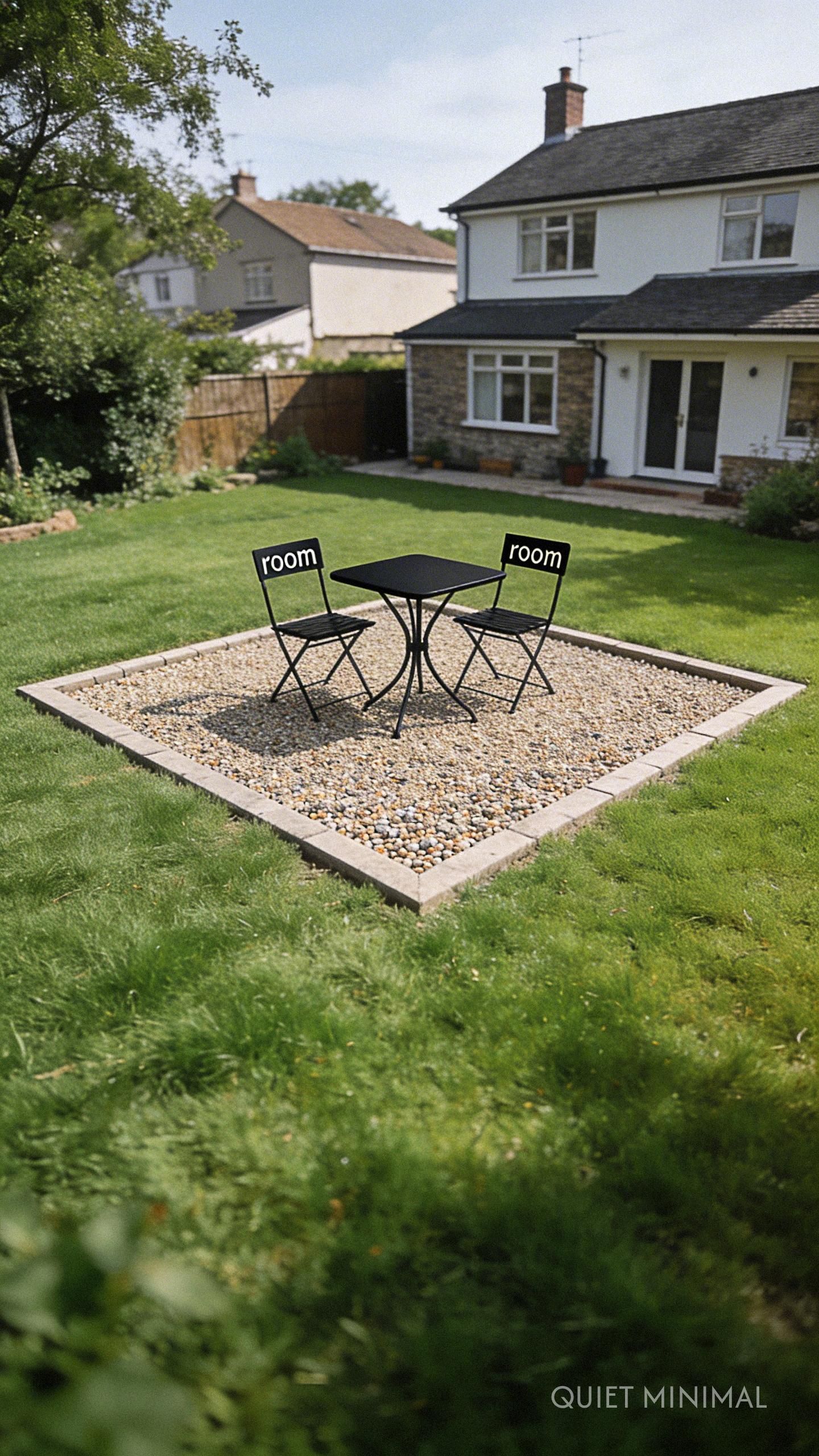 Key Takeaway: Use pea gravel to create a designated patio area. It’s a low-cost, beginner-friendly way to define an outdoor room and solve the problem of an imperfect lawn.