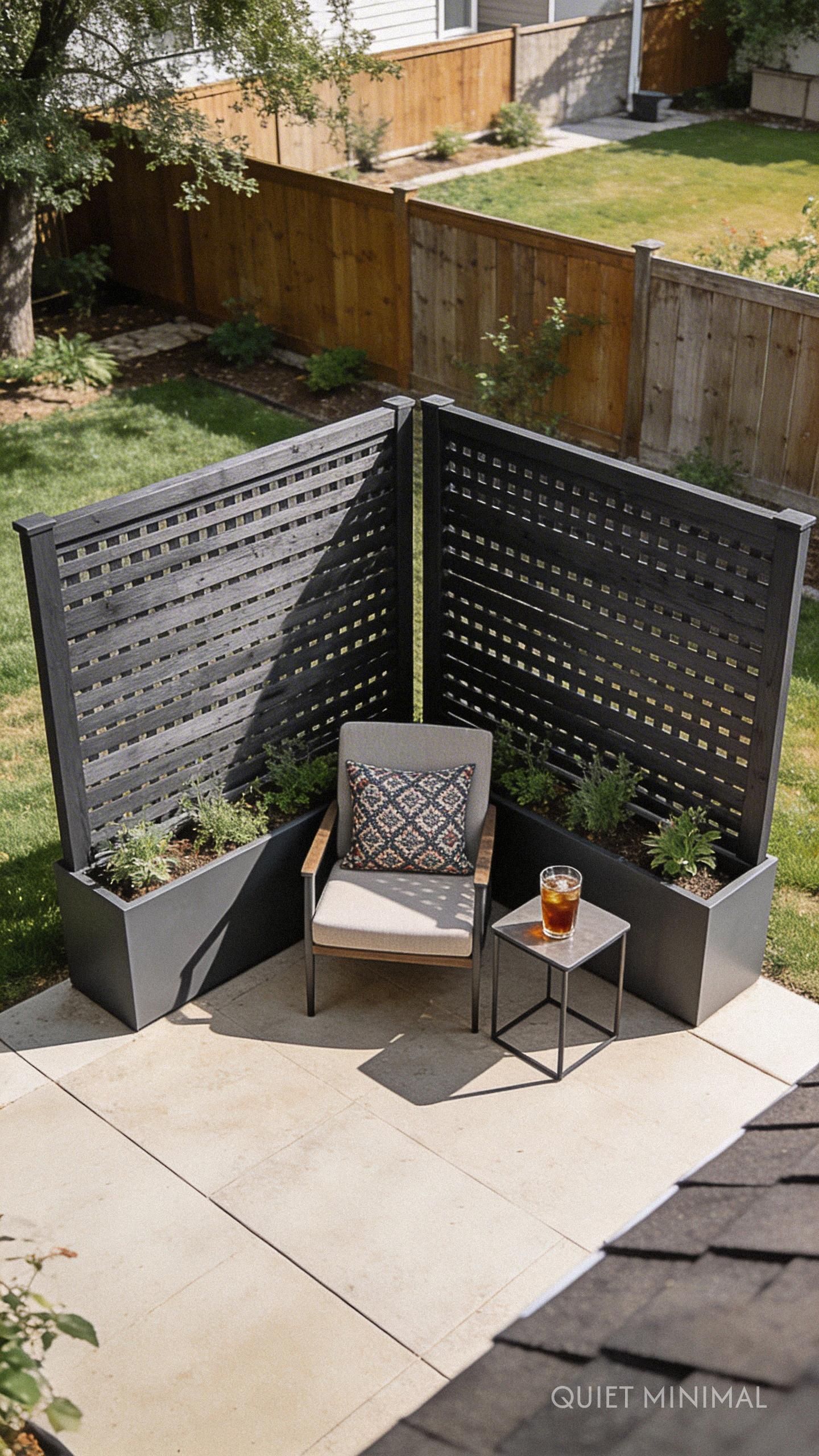 Feeling a bit exposed to the neighbors? Create an intimate zone with a simple and stylish DIY privacy screen. Purchase a few panels of standard wood lattice from a home improvement store. Instead of leaving them as-is, give them a sophisticated update with a coat of exterior paint in a dark, moody charcoal or a calming sage green. You can mount them to posts set in planters for a non-permanent solution or attach them to an existing deck or fence to add height and visual interest. It’s a functional fix that doubles as a beautiful architectural backdrop for your plants.