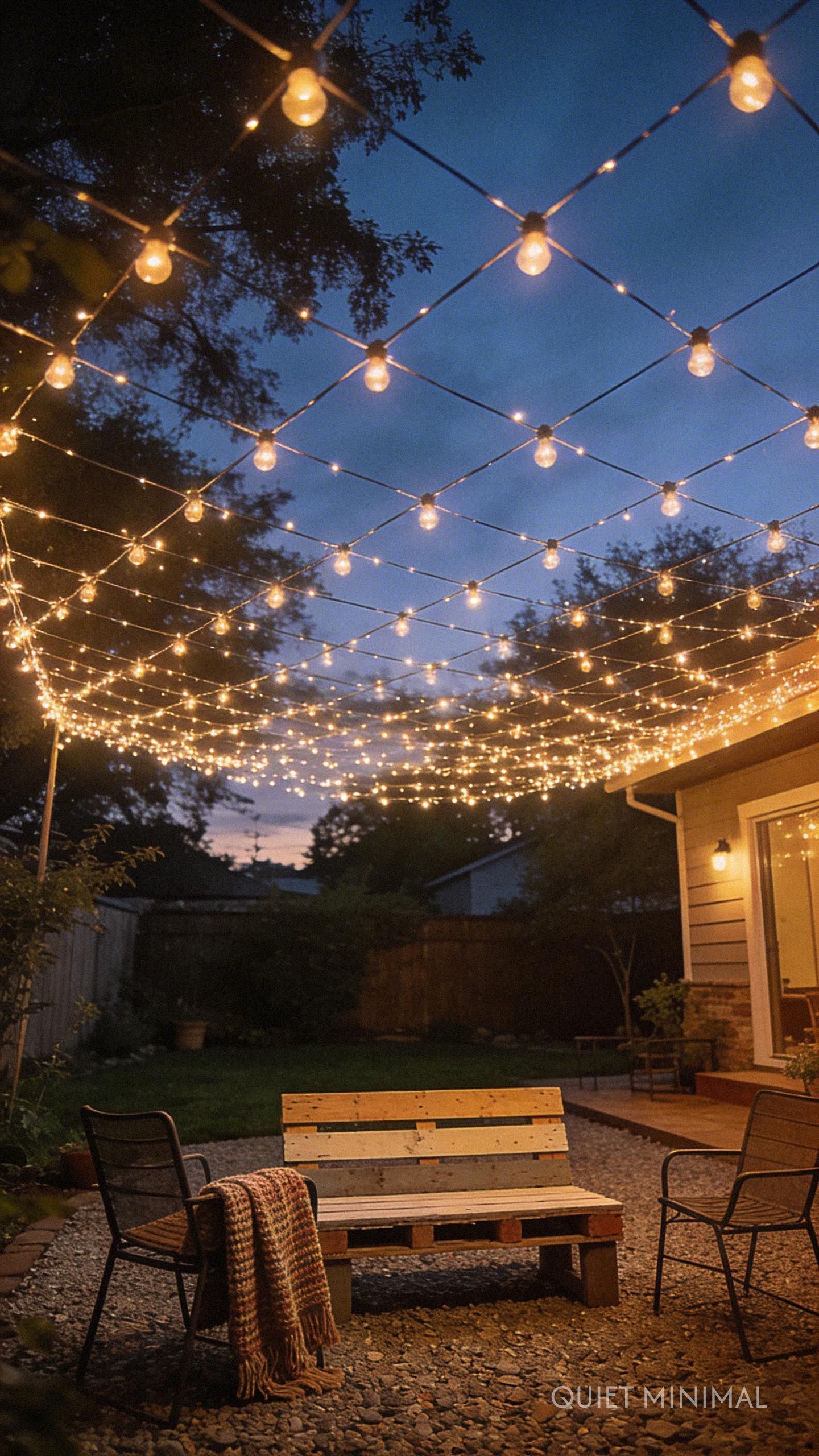 Key Takeaway: Use string lights to create a “ceiling” for your outdoor space. This single change adds instant ambiance and defines a specific zone for relaxing or entertaining.