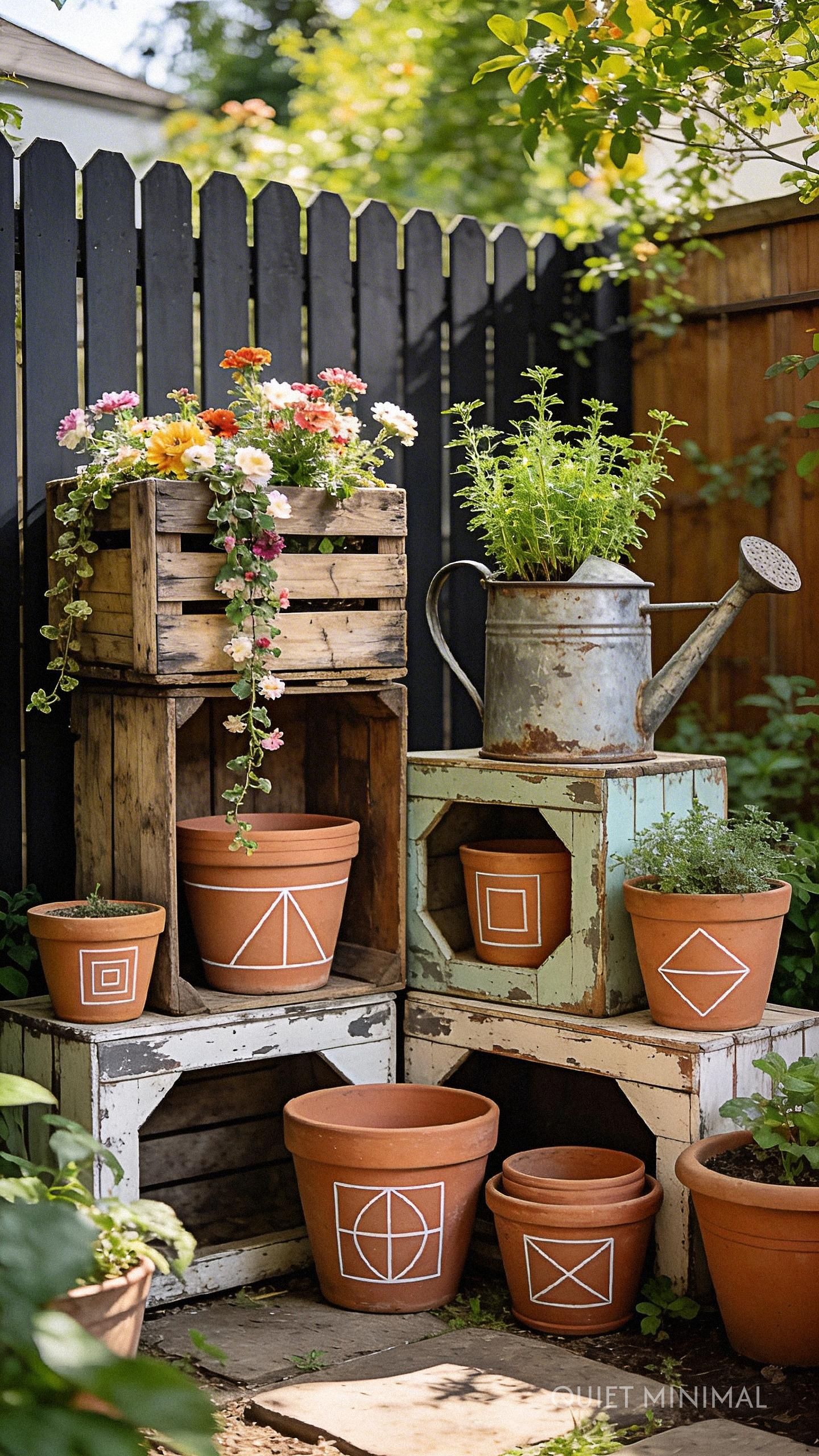 Your creativity shouldn’t stop at the back door. Move beyond standard plastic pots and curate a collection of unique, upcycled planters. An old metal watering can, a vintage wooden crate, or even a set of unused drawers can be repurposed into a charming home for your flowers and plants. You can also give basic, inexpensive terracotta pots a custom look with some leftover paint, creating modern geometric patterns or a simple color-blocked design. These personal touches showcase your maker mindset and infuse your garden with character.