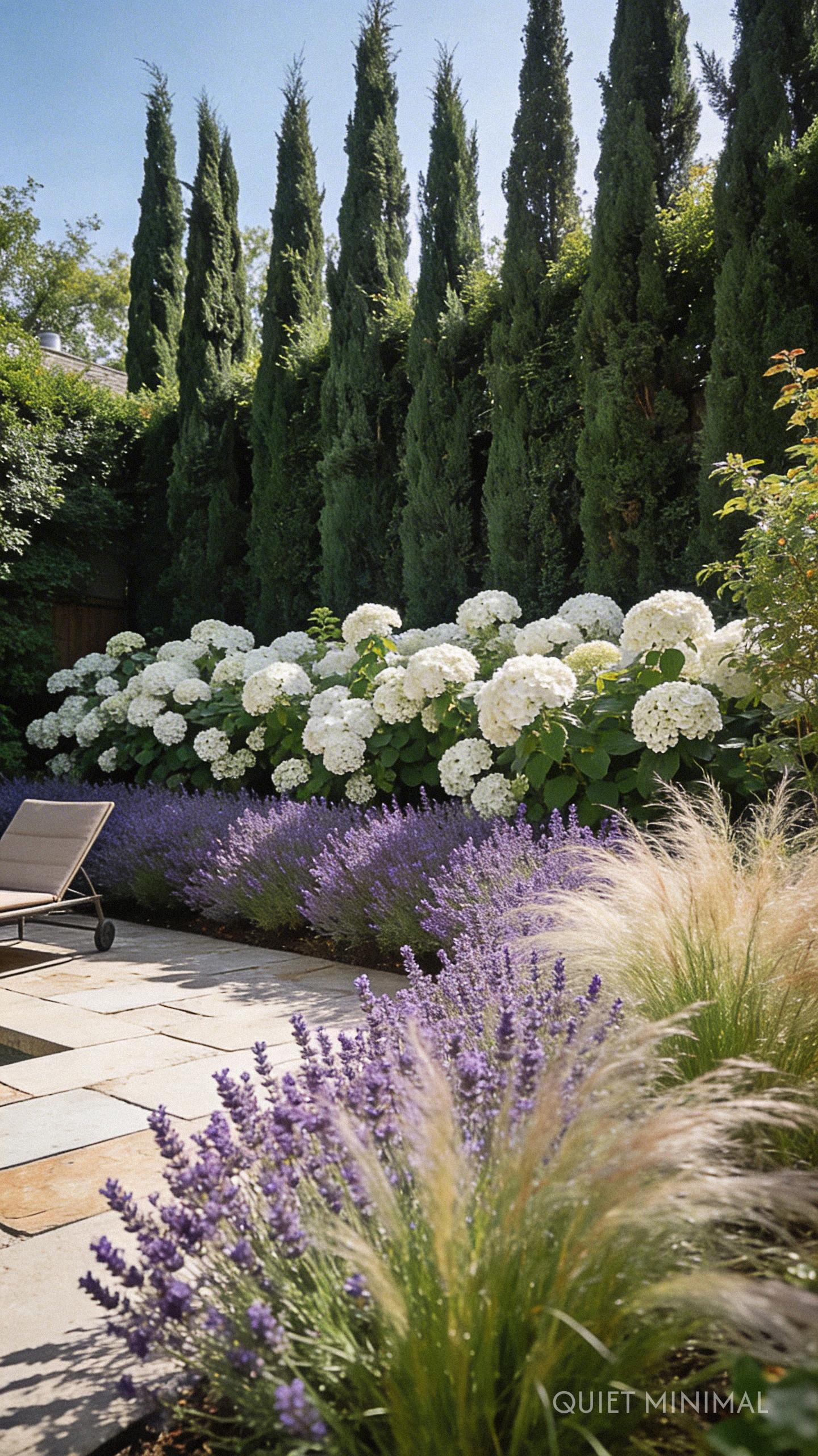 Forget the monotonous, single-file row of evergreens. A “living fence” uses a more natural, curated approach by layering plants of varying heights, textures, and colors. Start with a tall, slender backdrop like Arborvitae or Italian Cypress along the property line. In front of that, add a medium-sized layer of lush shrubs like hydrangeas or viburnum. Finish with a low border of perennials or grasses in the foreground. This staggered technique not only blocks views from every angle but also creates a deep, visually interesting garden that feels intentional and organic, not defensive.