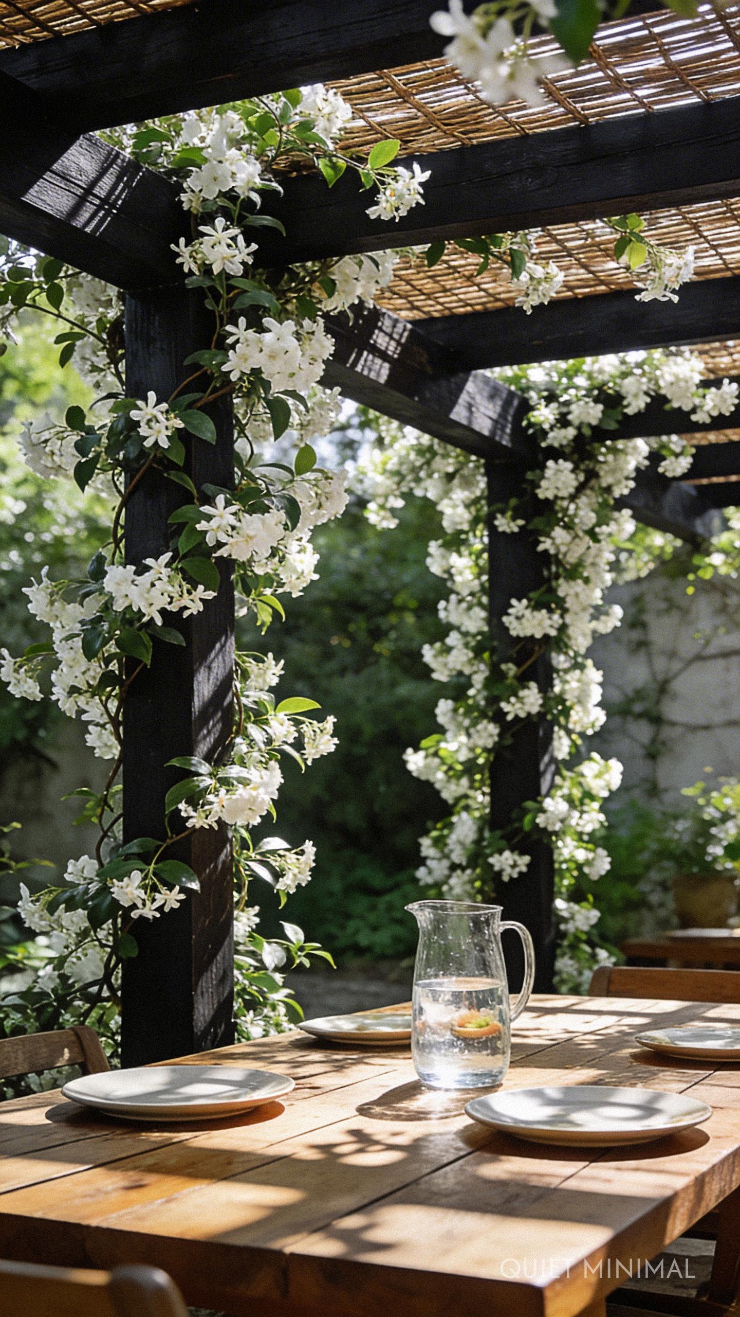 Key Takeaway: A pergola defines an outdoor living space while providing a structure for climbing plants to create a beautiful, dappled-light canopy.