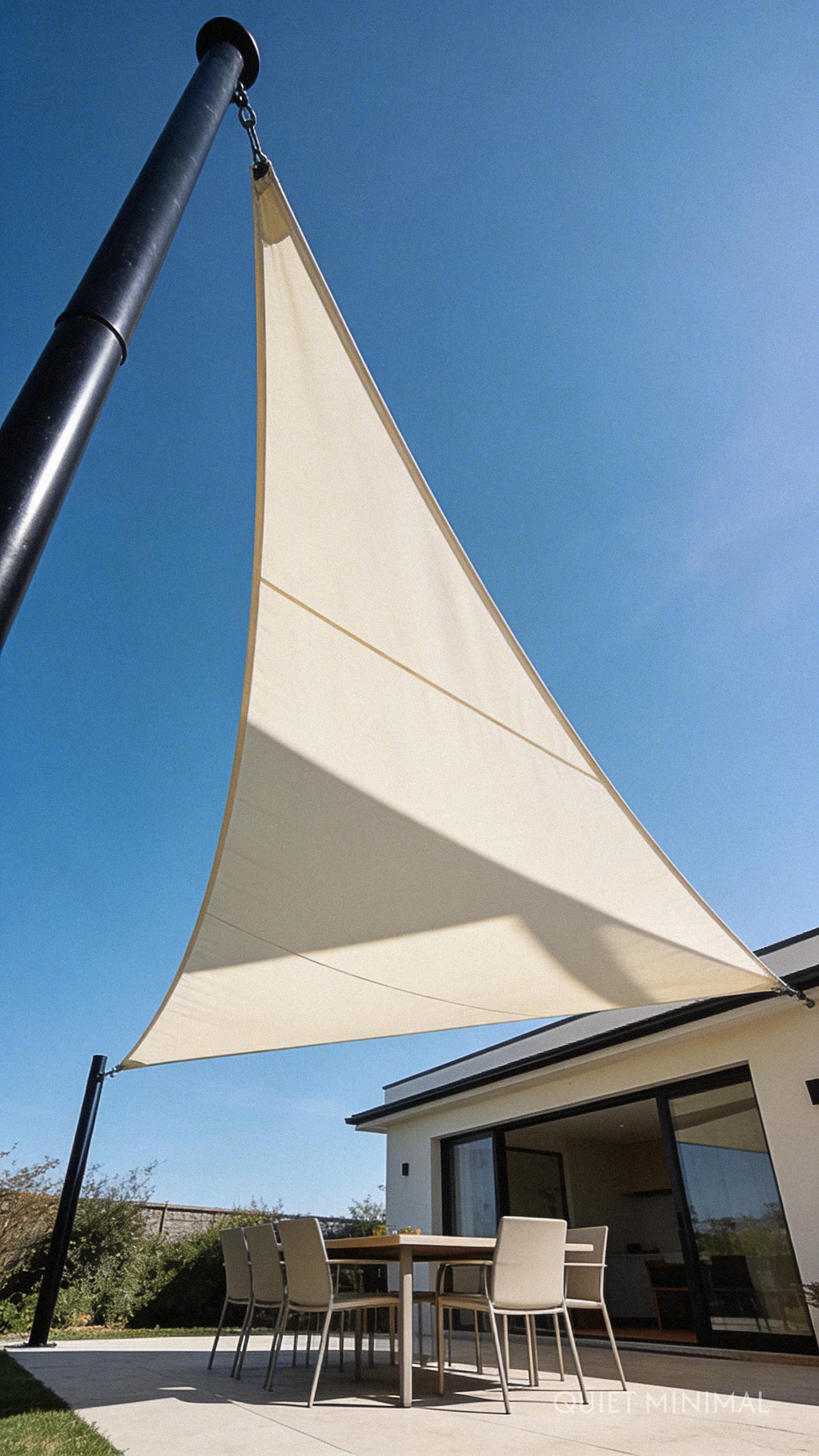 Key Takeaway: A sail shade offers a modern, minimalist solution for overhead shade, creating a light and airy feel without the permanence and weight of a solid roof structure.