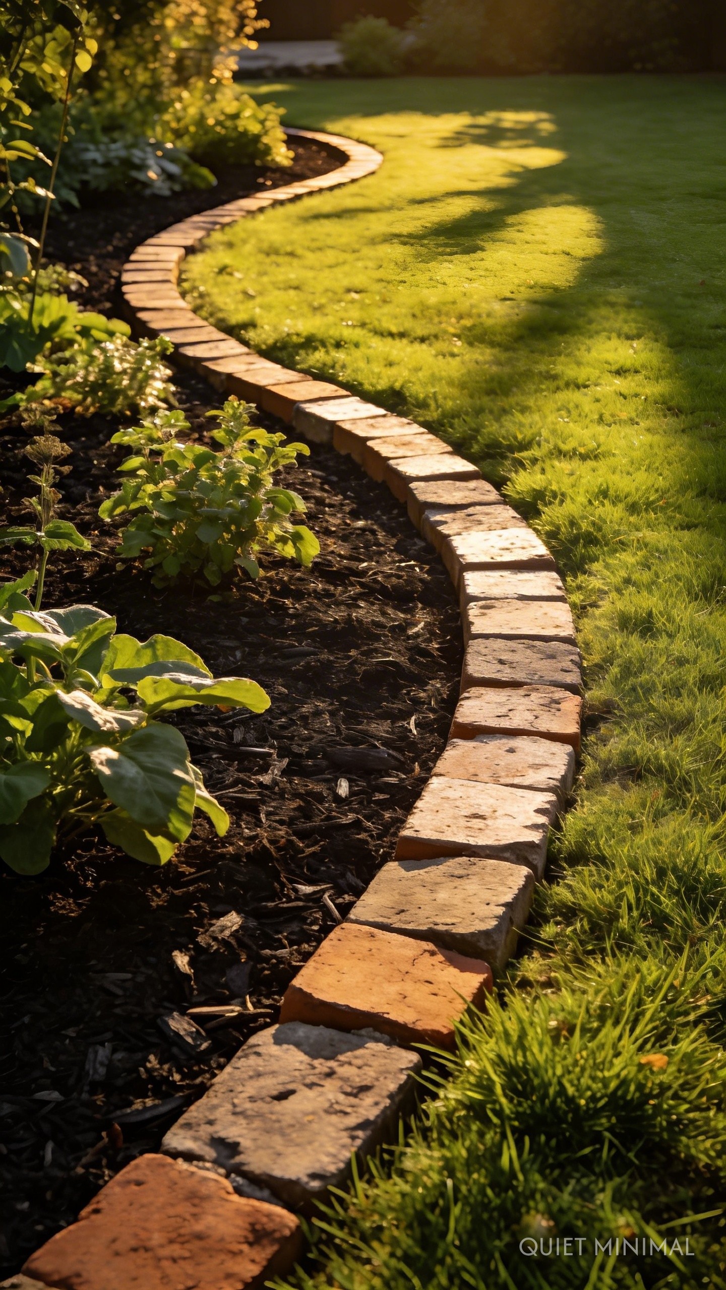 Clean lines are what separate a manicured garden from an overgrown patch. But you don’t need to install expensive metal or plastic edging to achieve a defined look. Use natural materials to create beautiful, subtle borders between your lawn, garden beds, and pathways. A row of smooth river rocks, half-buried reclaimed bricks, or even small, neatly-laid logs can create a charming and effective edge. For the most minimal approach, a clean “spade edge”—a 4-inch deep trench cut with a flat spade—creates a sharp, clean shadow line that looks incredibly professional.