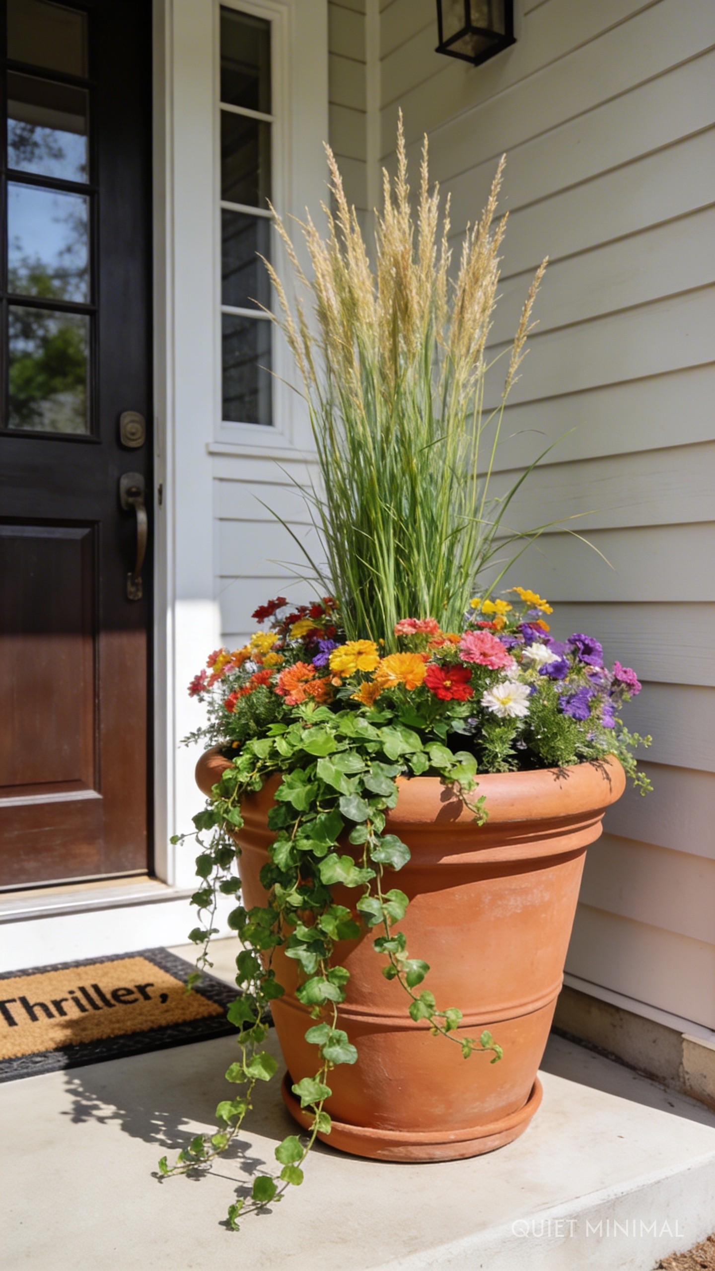 - Thriller: A tall, dramatic plant in the center that provides a vertical accent (e.g., ornamental grass, canna lily).
