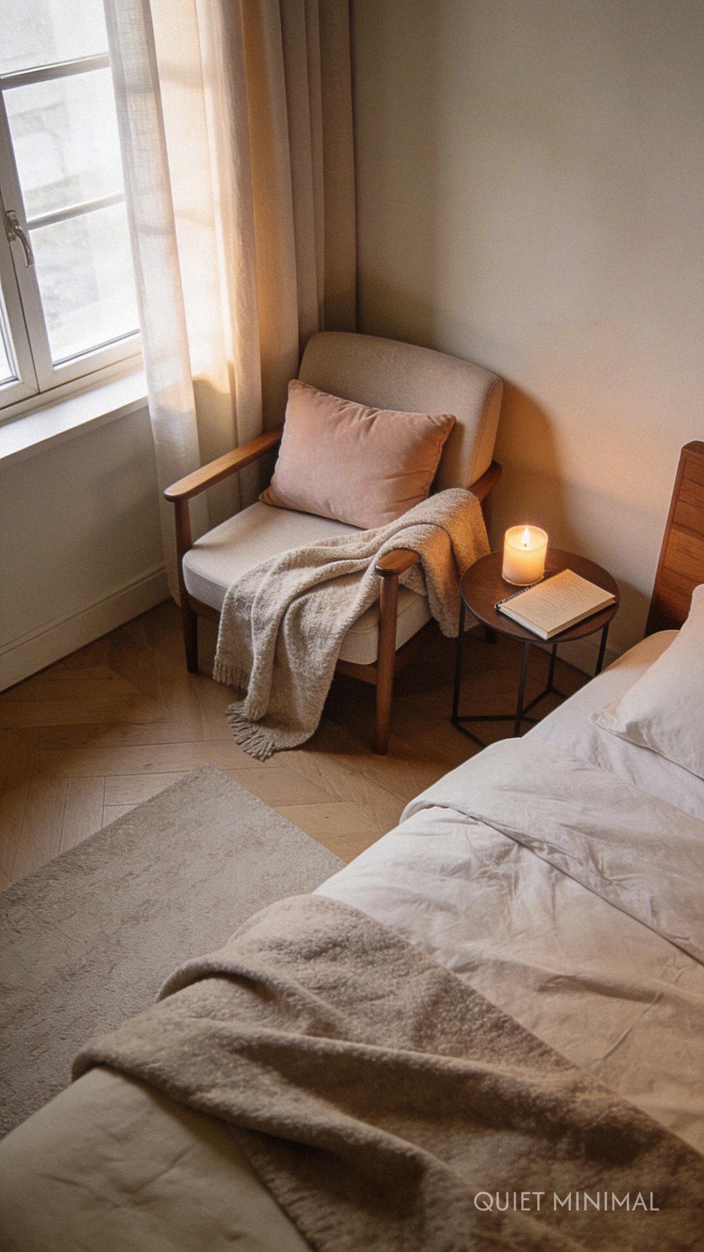 Key Takeaway: Intentionally create a small, dedicated corner with a comfy chair and a small table to serve as a personal space for relaxation and self-care.