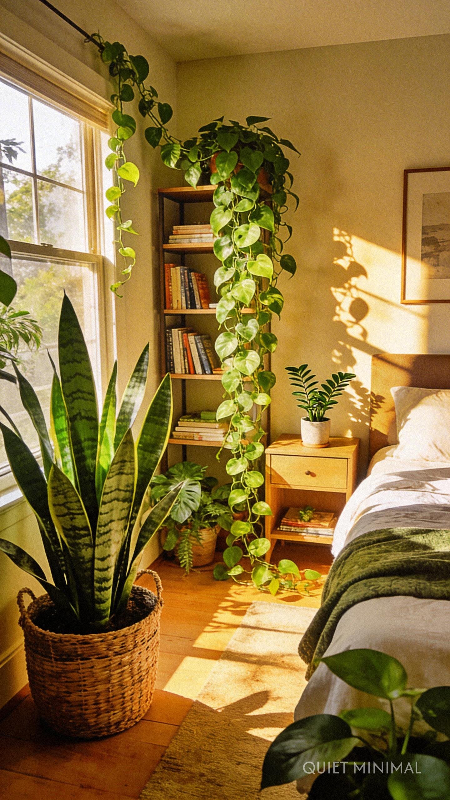 Key Takeaway: Add vibrancy and a natural, calming element to your room with low-maintenance houseplants in affordable, thrifted, or DIY planters.