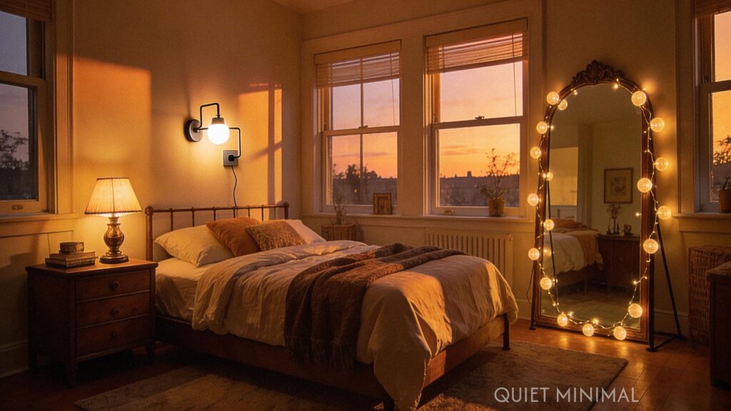 Key Takeaway: Use multiple, warm light sources like plug-in sconces and table lamps to create a cozy, layered ambiance instead of relying on a harsh overhead light.
