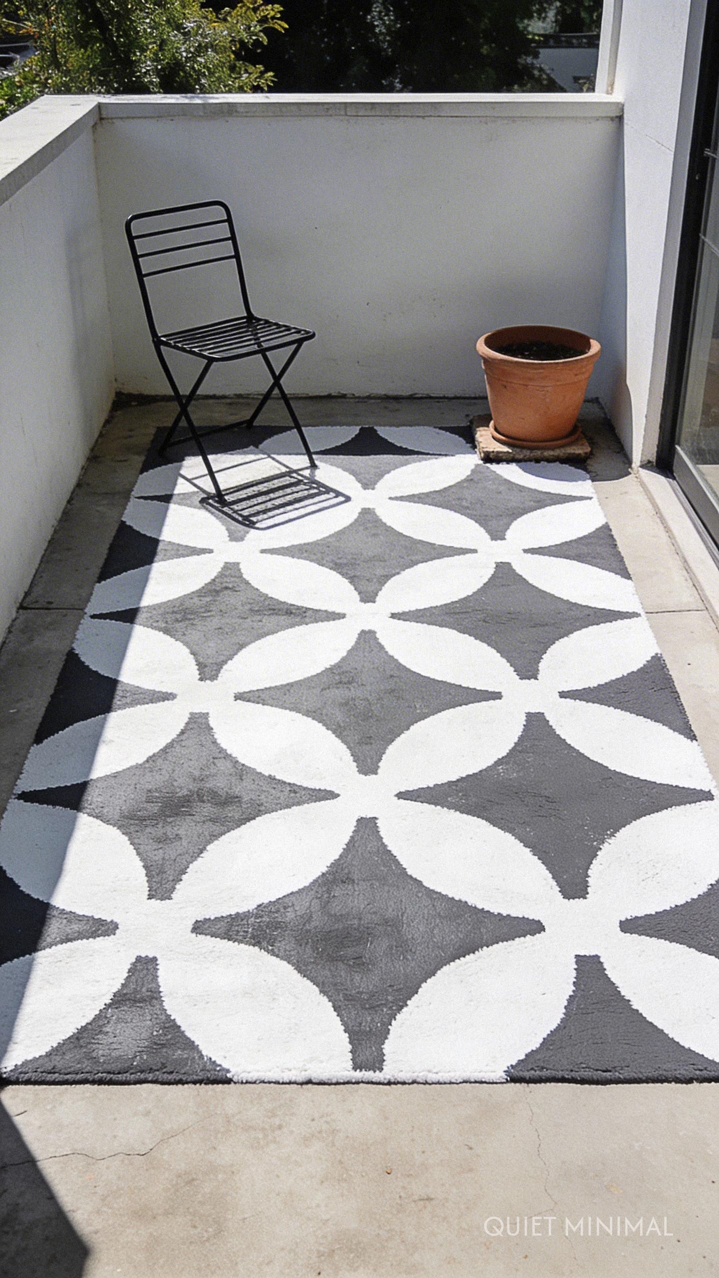 Key Takeaway: A painted-on pattern or “rug” is a high-impact, low-cost way to define your patio floor and add a durable pop of personality.