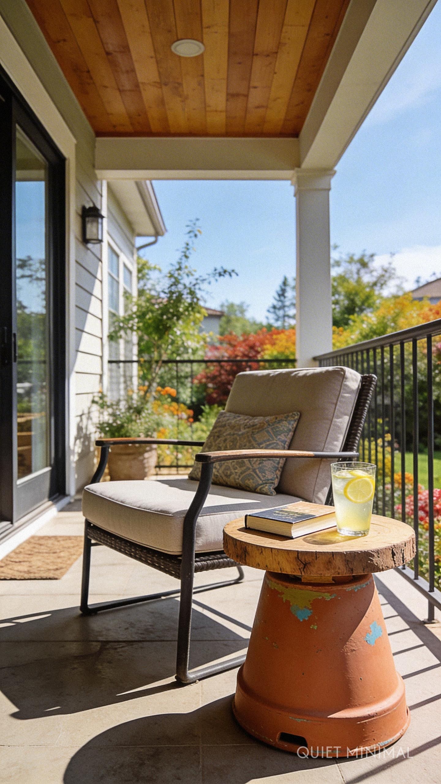 Key Takeaway: A unique side table is the perfect DIY project. Upcycling an unexpected object adds a personal, creative story to your patio design.