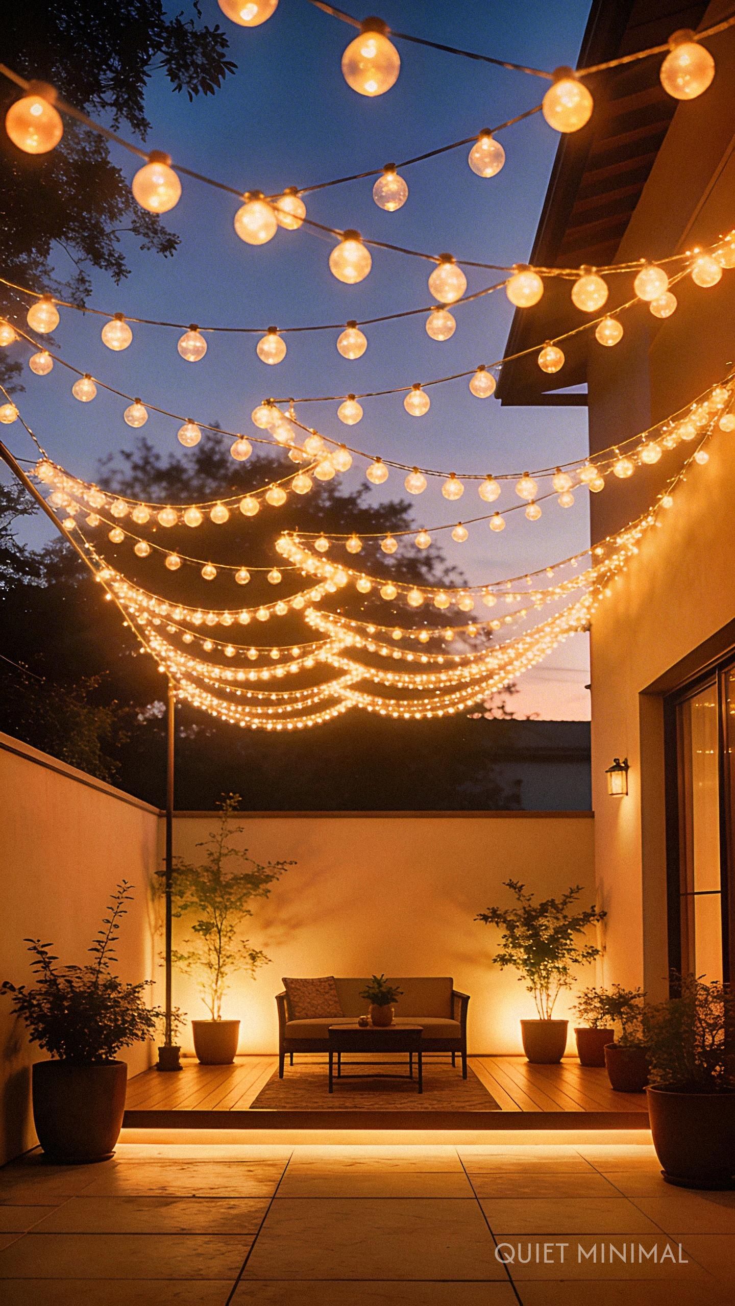 Key Takeaway: String lights are a non-negotiable for budget patio design; they define the space’s height and create an immediate sense of warmth and occasion.