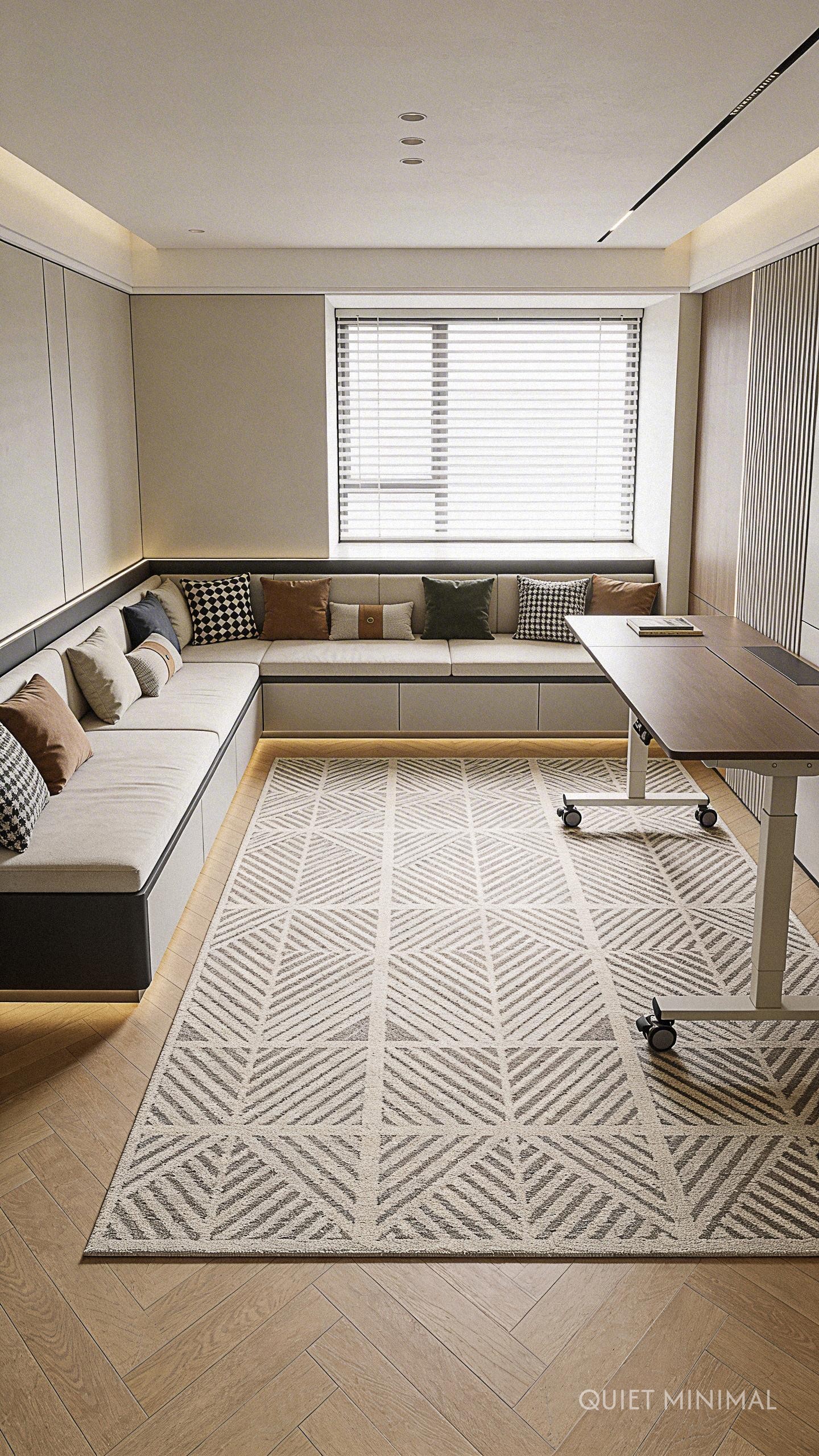 Key Takeaway: Minimalism is key for mental clarity. Keep equipment hidden in low storage and use plants and lighting to set a restorative mood.