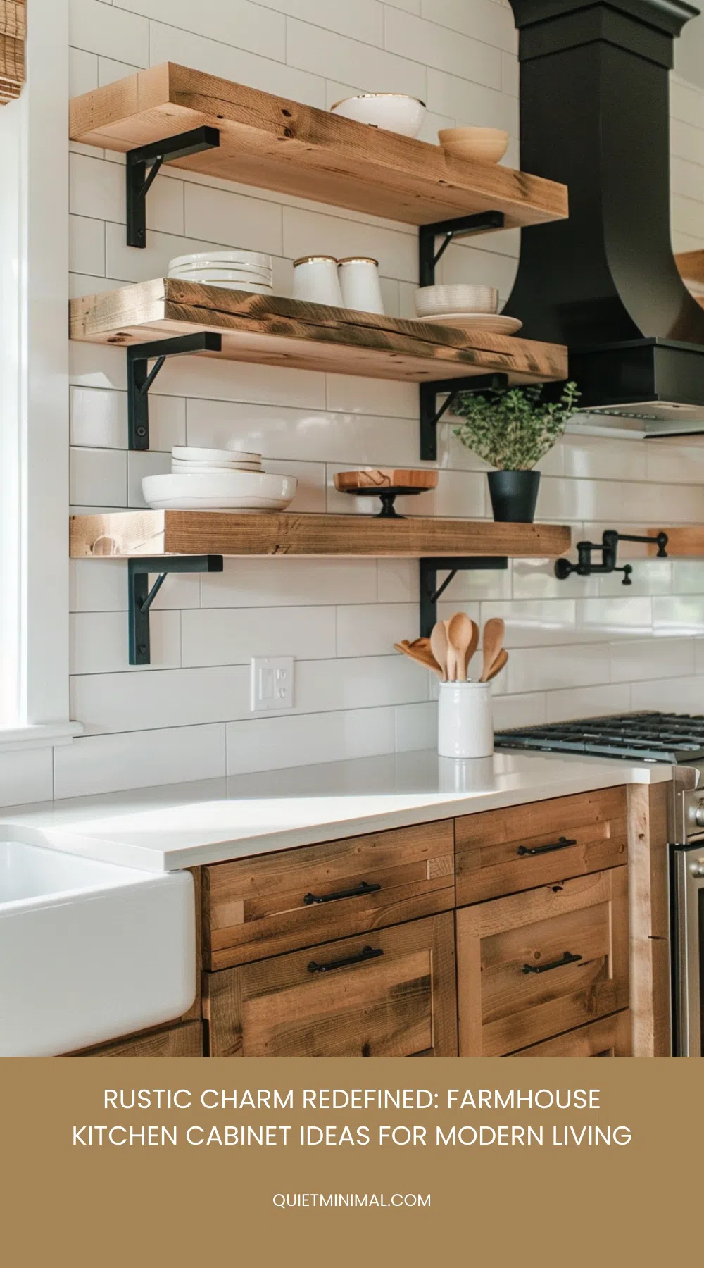 Additionally, open shelving can make your kitchen feel larger and more open. By eliminating bulky cabinet doors, you create an airy atmosphere perfect for smaller kitchens or spaces that need extra light. You can paint the shelves in a complementary color or leave them in natural wood to emphasize the farmhouse charm.