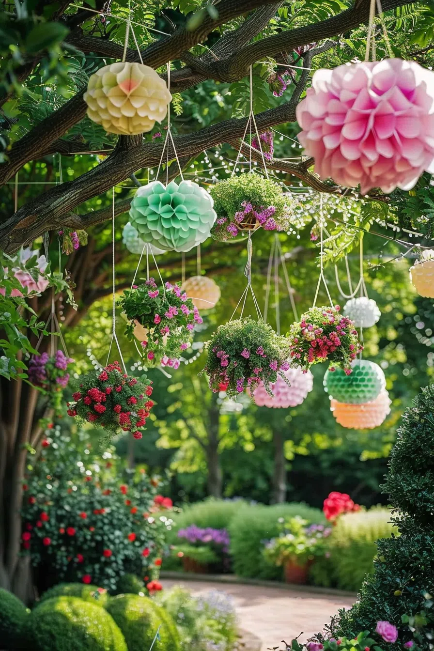 Hang colorful string lights around trees or across the garden for a magical atmosphere. - DIY Garlands: