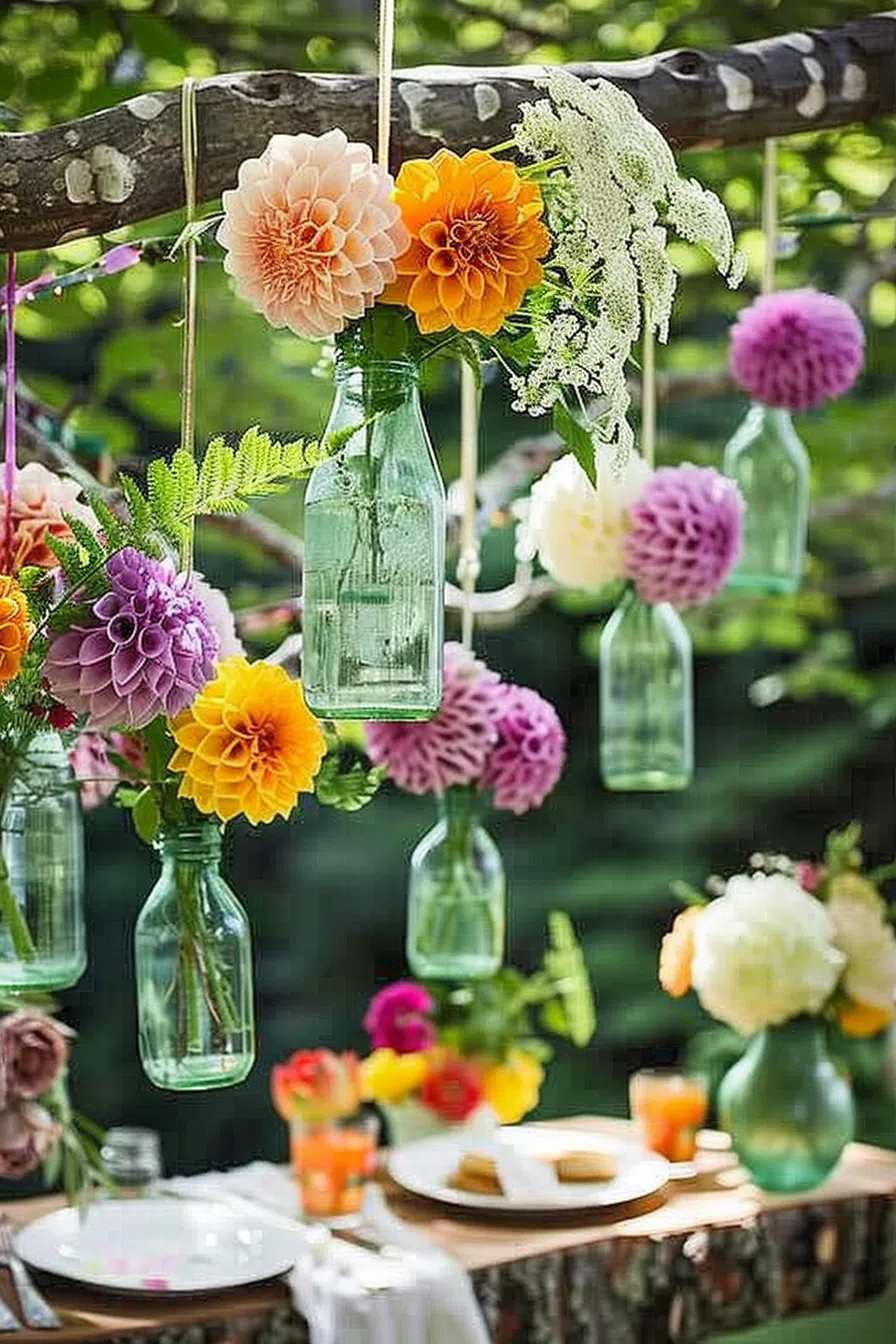 Now that your table setup is decided let’s brighten up your garden party with some stunning floral arrangement ideas. Flowers can transform the atmosphere, creating an enchanting, elegant, and festive setting for your guests.