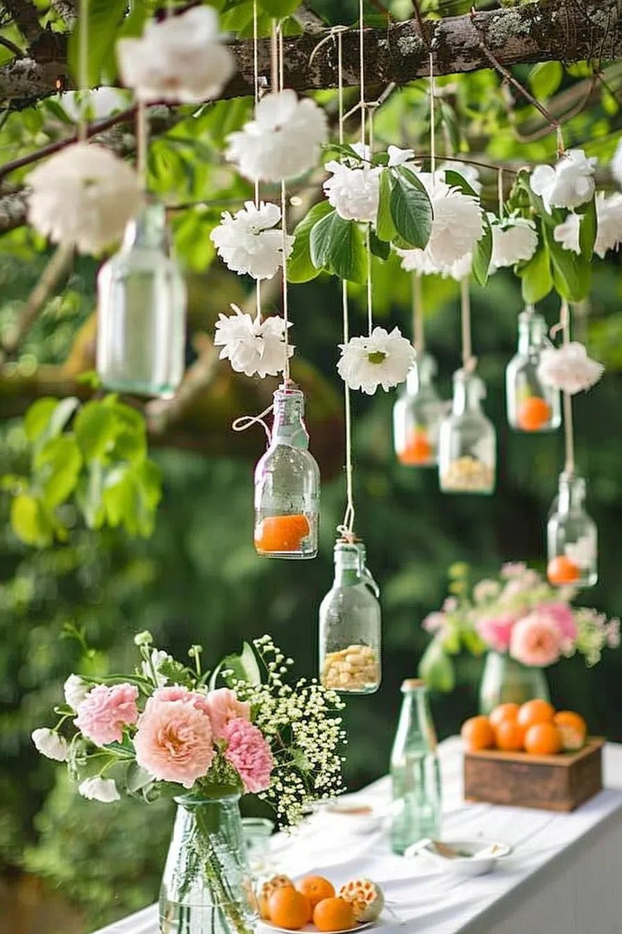 Let’s dive into some DIY decorative accents that can add a personal touch and extra charm to your garden party. These decorations aren’t only cost-effective and provide an opportunity to showcase your creativity.