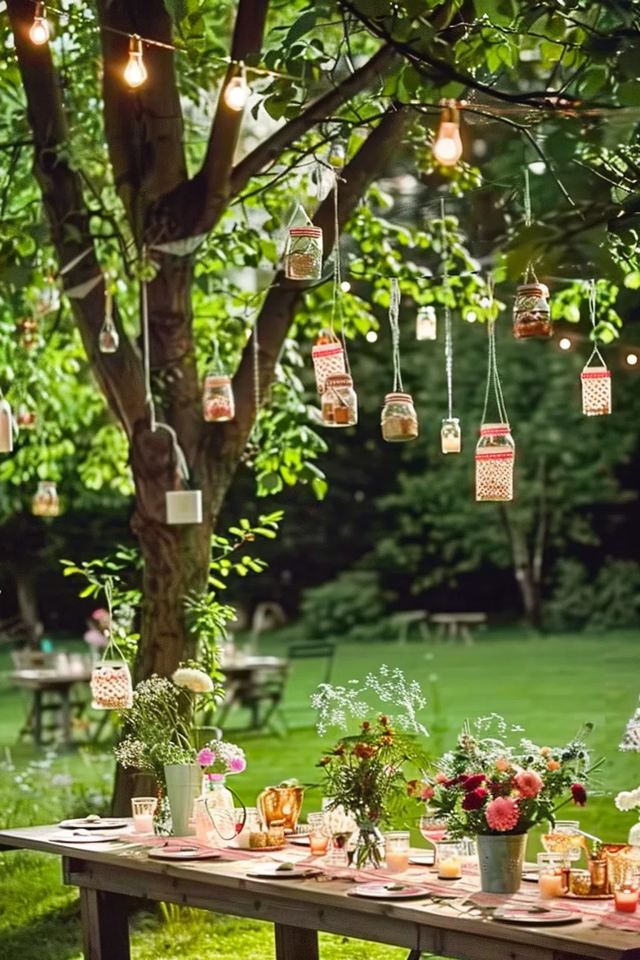 You can transform simple jars into elegant candle holders with some ribbons, lace, or twine. Place a tea light inside and watch your garden glow. - String Lights: