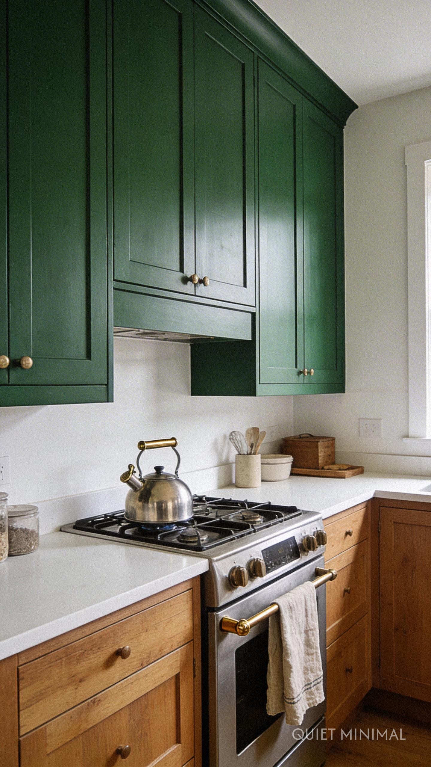 The “green” in a green and wood kitchen is deeply personal. Don’t just settle for any green; curate a shade that sets the emotional tone for your space. Softer, muted greens like sage, eucalyptus, or moss create a serene and airy atmosphere that feels restorative. For a more dramatic and grounding effect, consider deeper tones like forest, olive, or pine. To find your perfect match, paint large sample boards and observe how the color changes throughout the day in your kitchen’s unique light. This isn’t just paint; it’s the backdrop to your daily life.
