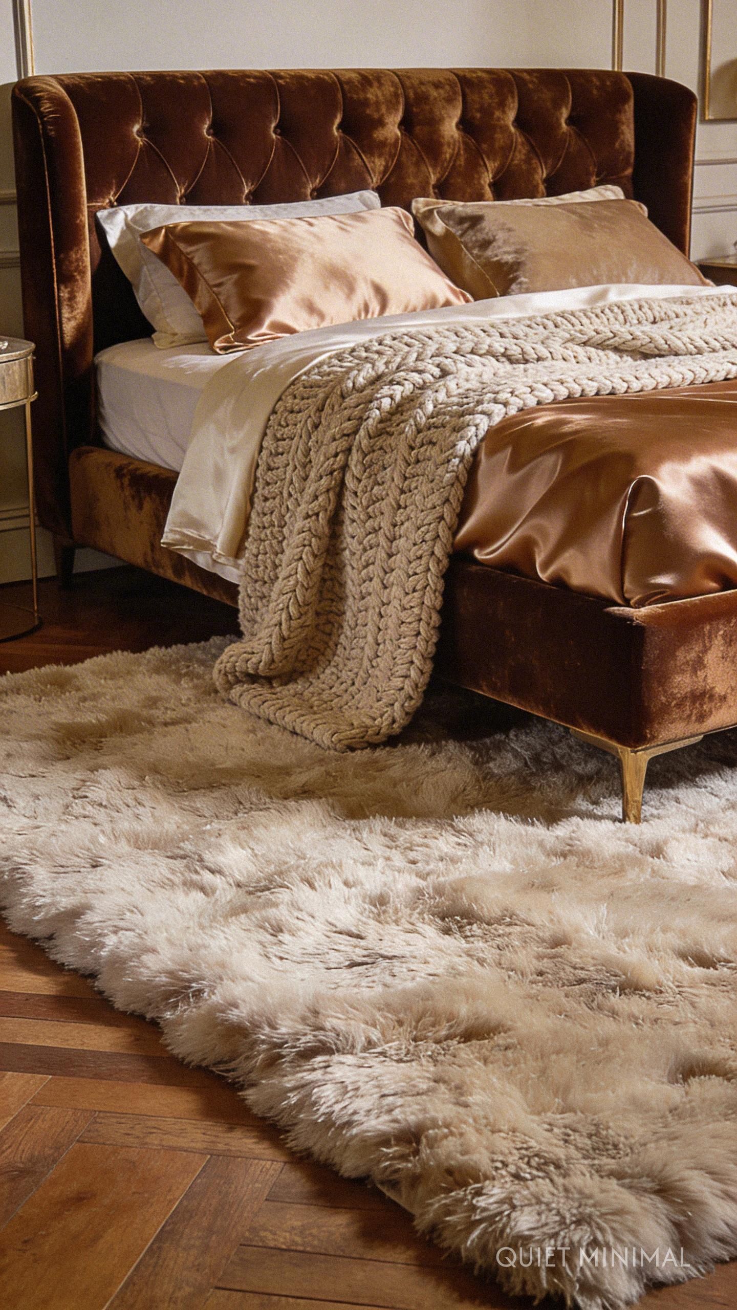 Key Takeaway: Mix and layer different textures like wool, velvet, silk, and linen to add warmth, depth, and a sense of sensory comfort to your bedroom, making it feel more inviting.