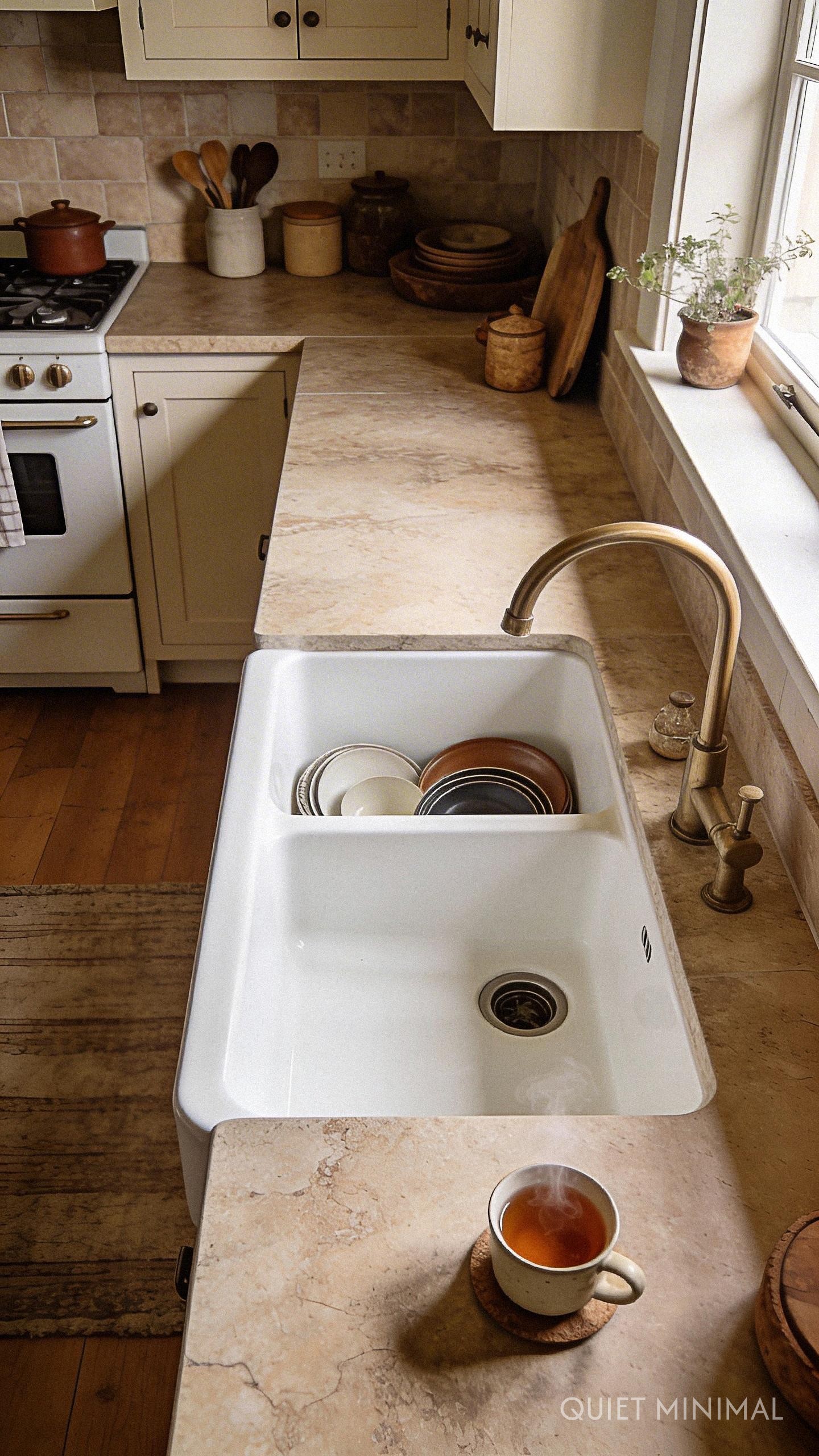 Key Takeaway: A deep, single-basin sink is a functional game-changer, allowing you to hide dirty dishes below the counter line and maintain a clutter-free look.