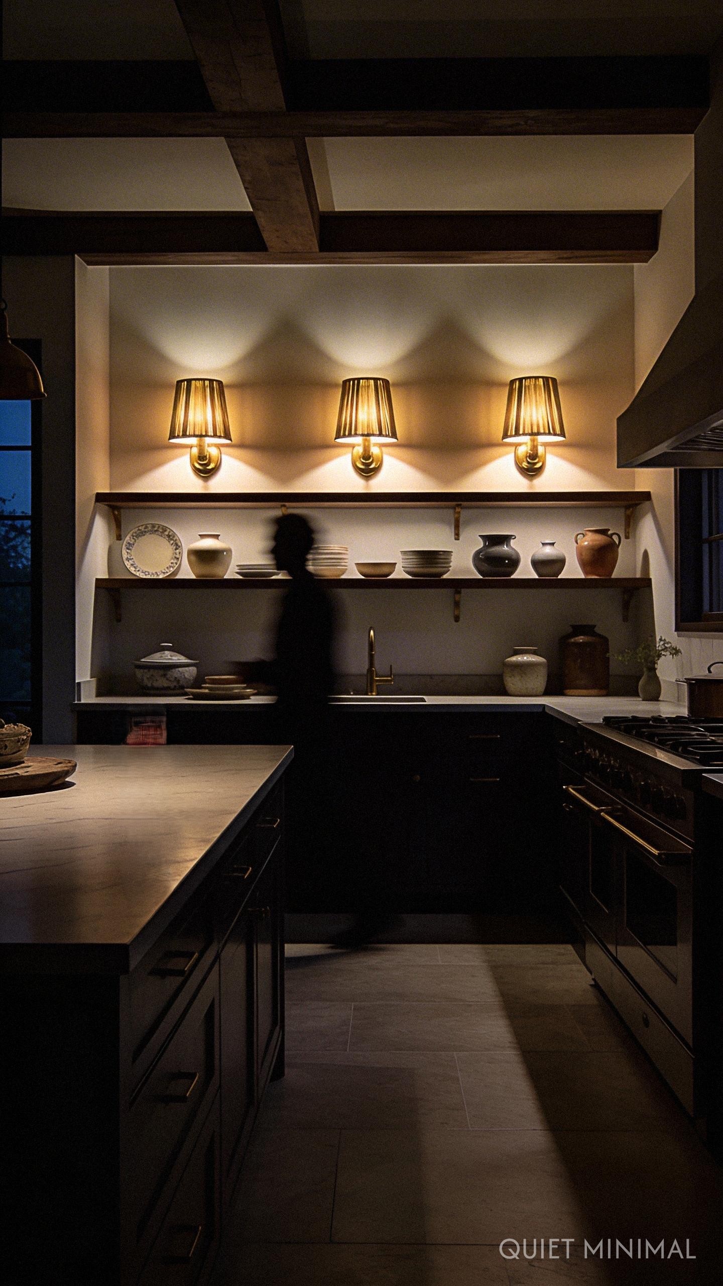 Key Takeaway: Use sconces or under-shelf lighting to highlight your display and add a cozy ambient glow in the evening.