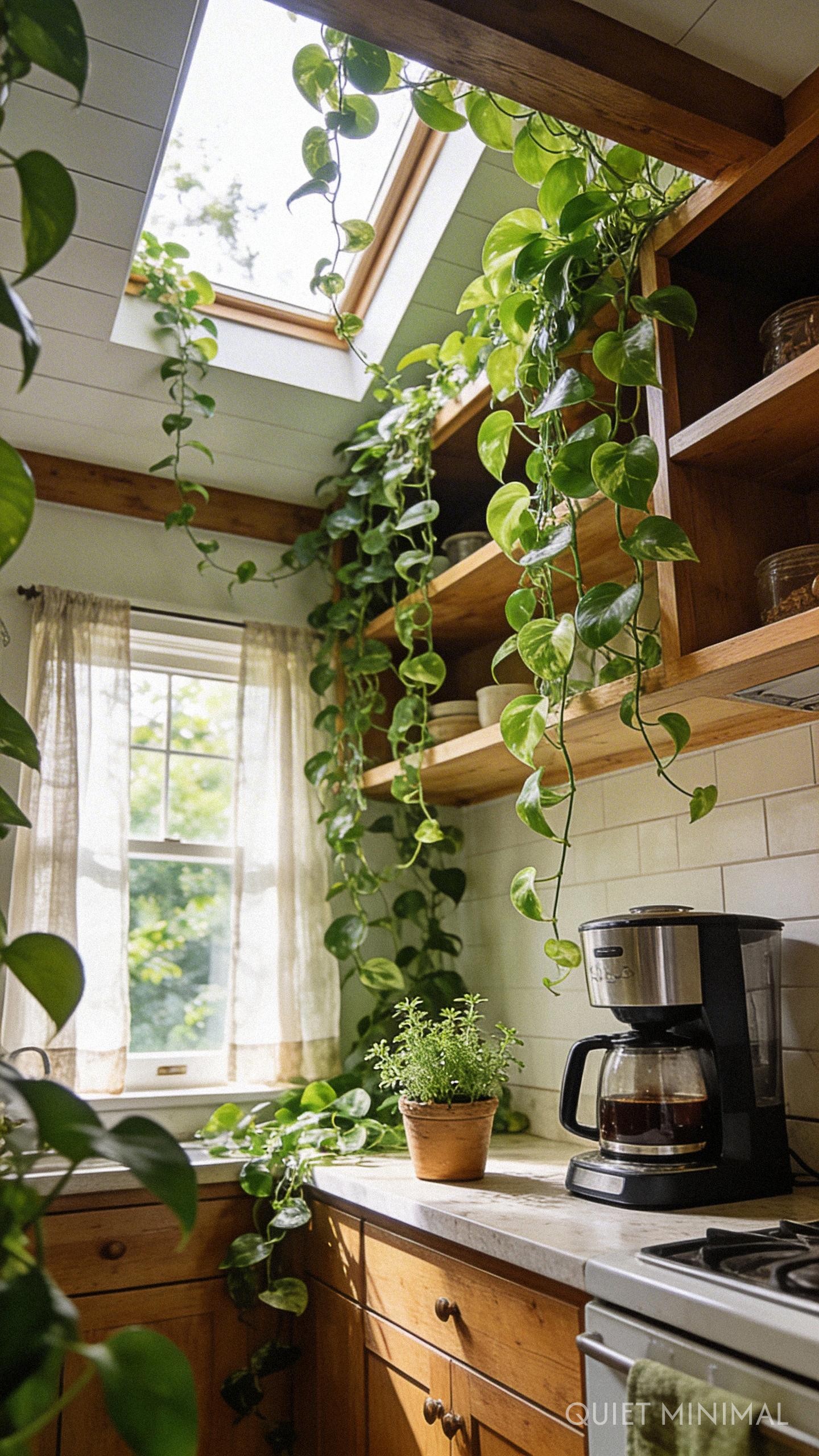 No sanctuary is complete without a touch of nature. The farmhouse aesthetic is inherently tied to the outdoors, so bridging that gap is essential. Trailing plants like Pothos or Ivy soften the hard lines of the shelving and introduce a vibrant pop of organic green.