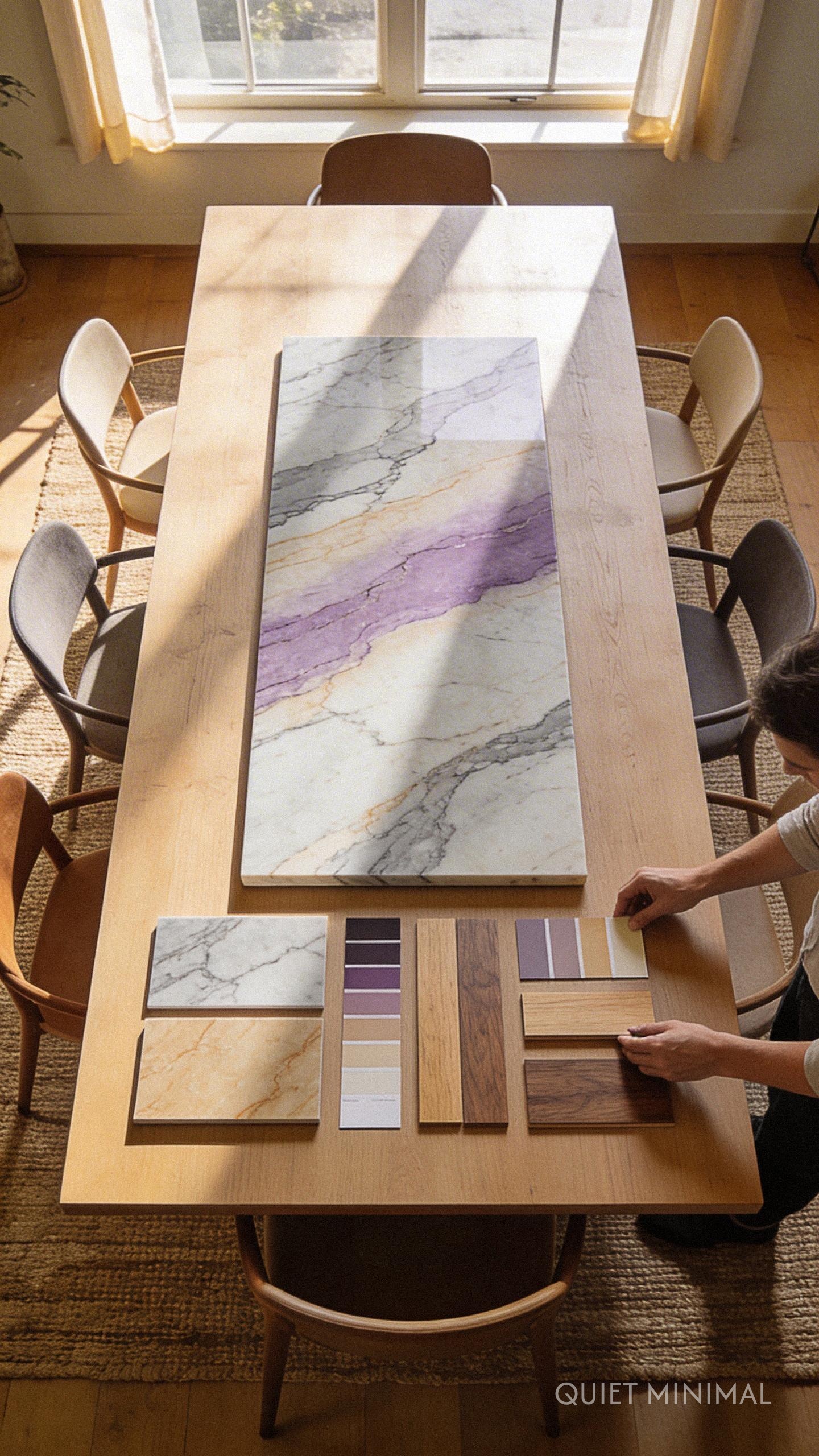 Key Takeaway: Collect real-world material samples for your mood board to avoid disappointing colour mismatches from screen to reality.