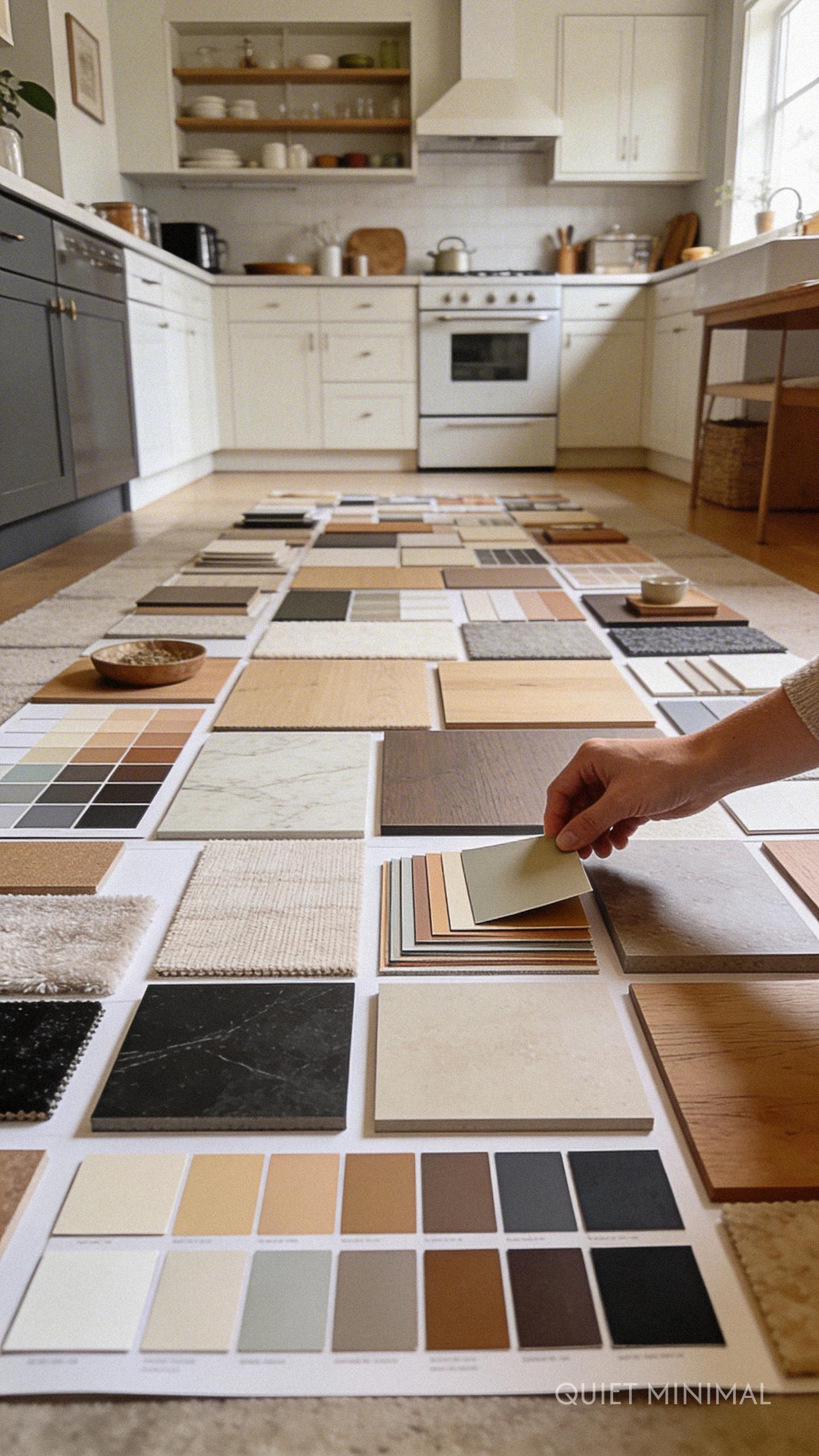 Key Takeaway: Observe your collected colour and material samples in your kitchen’s specific natural and artificial light at different times of day before finalizing any decisions.