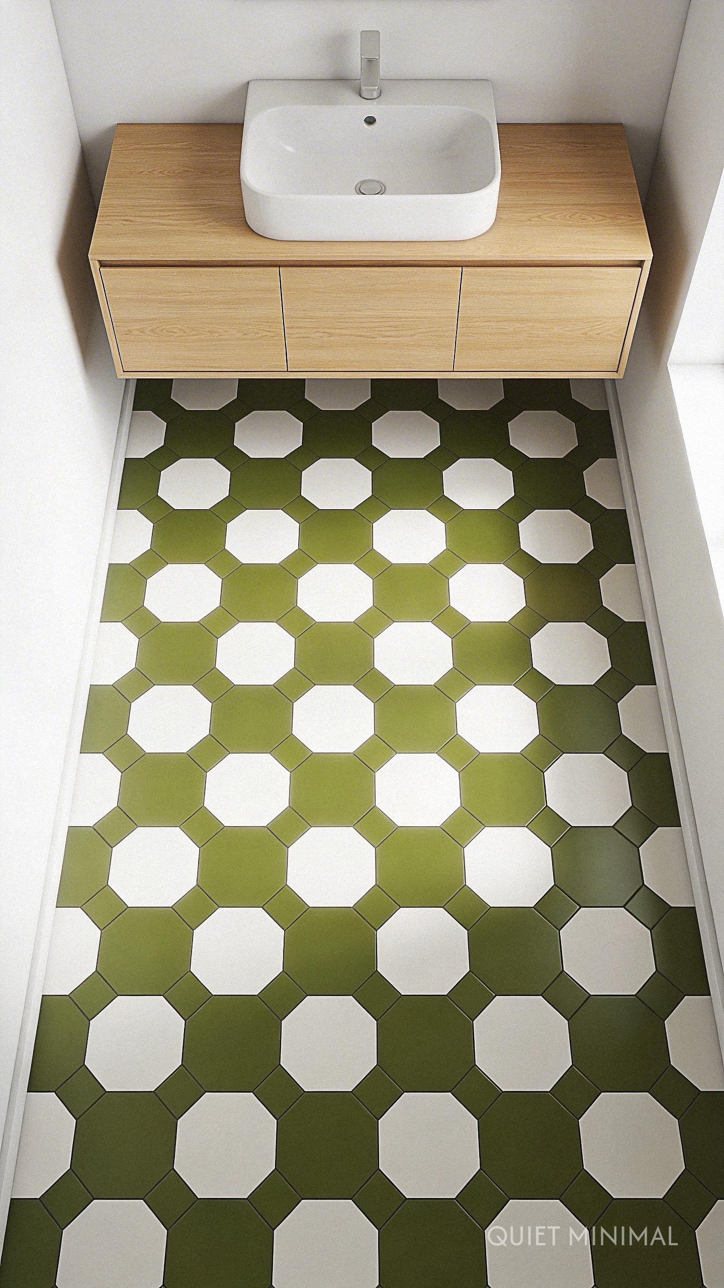 Key Takeaway: Use tile patterns like honeycomb, vertical stacks, or simple grids to introduce a retro feel, even with modern-colored tiles, creating a perfect backdrop for minimalist fixtures.