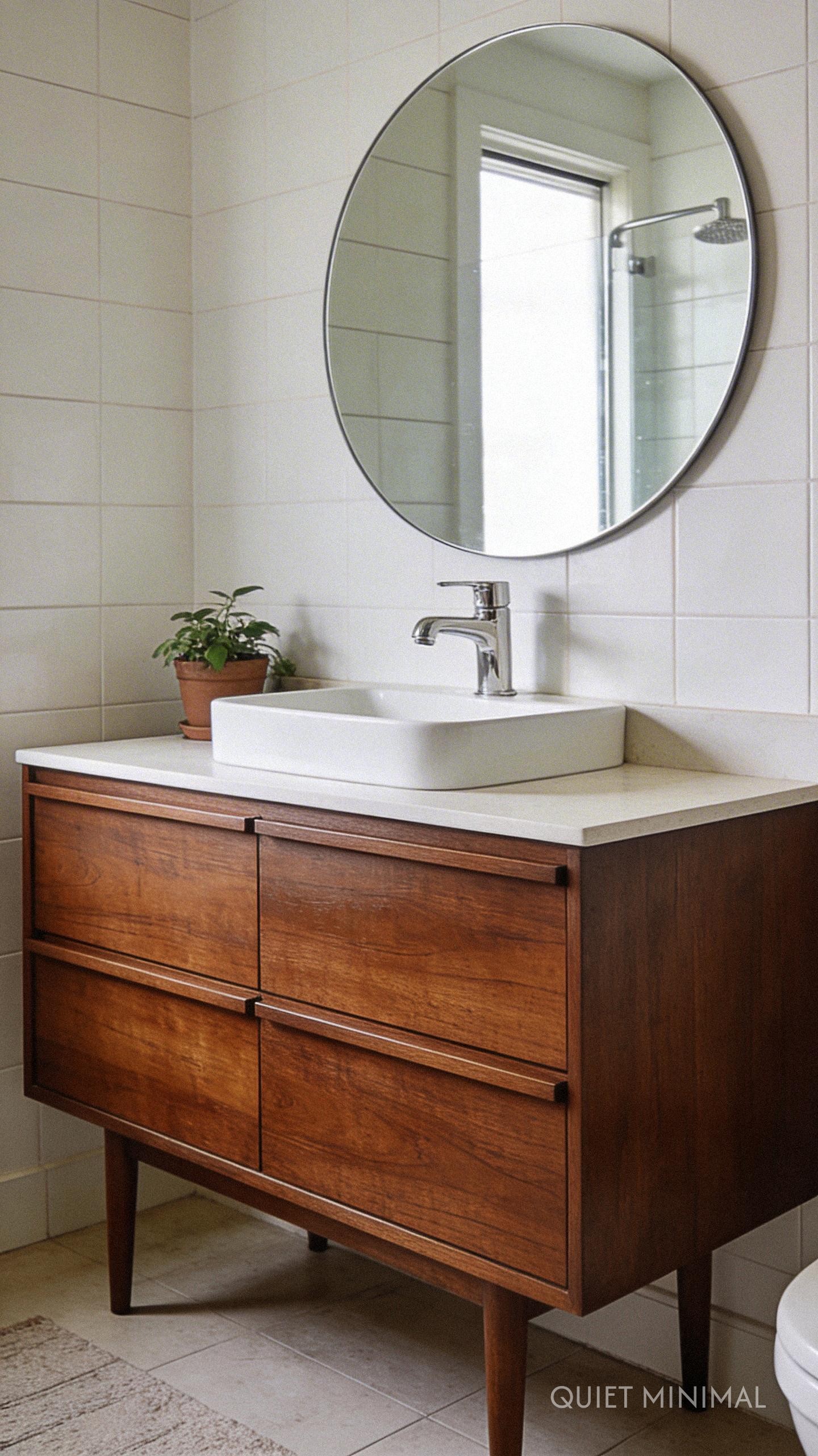 This is where your inner curator gets to play. Small details can have a huge impact. Display your skincare on a vintage-inspired tray. Use amber glass soap dispensers. Hang a piece of wall art featuring retro typography or an abstract design. A few well-chosen potted plants, like a snake plant or pothos in a ceramic pot, add a touch of life and were staples in mid-century homes. These carefully selected objects are what make the space feel personal and complete.