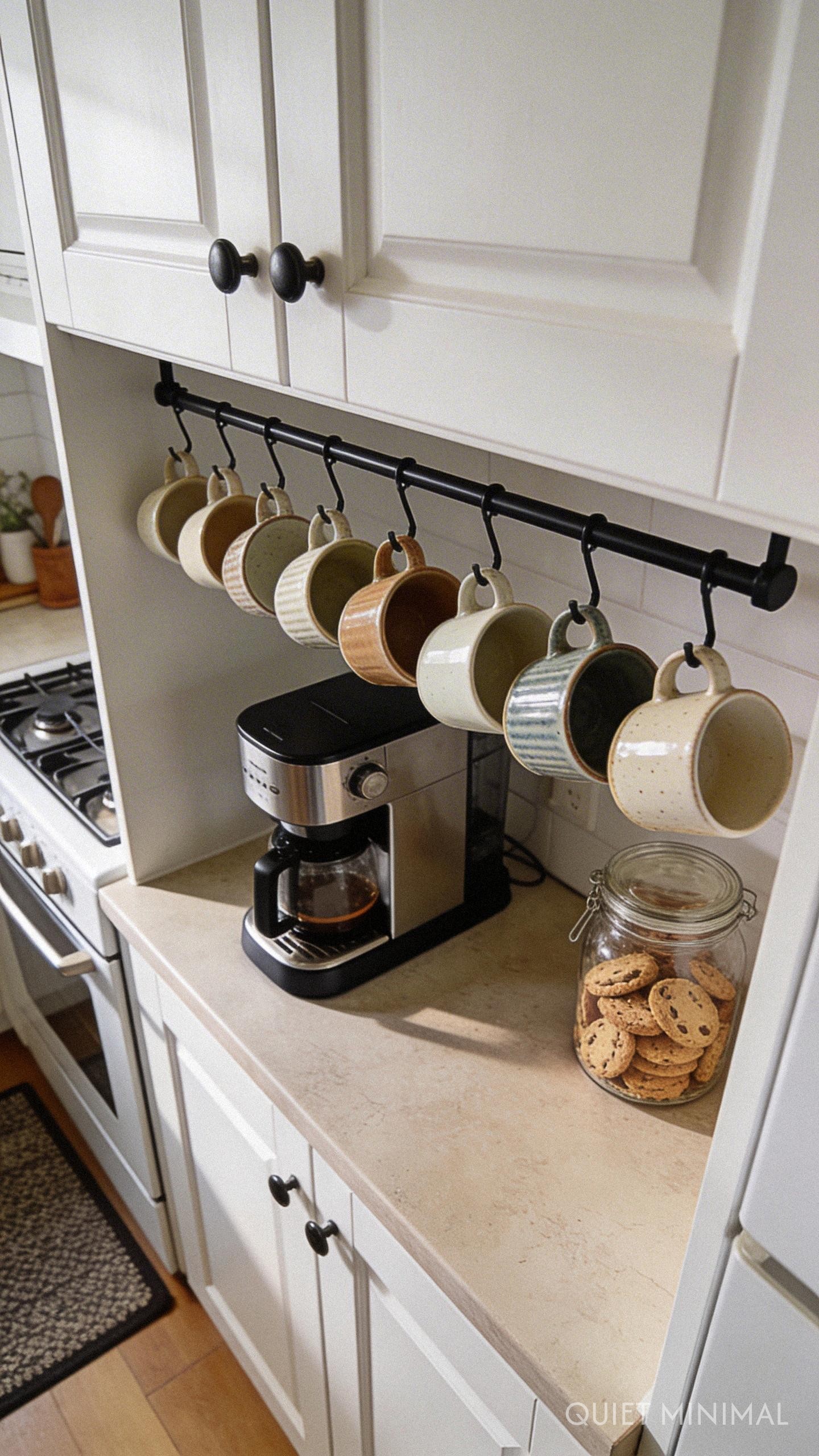 Key Takeaway: Look for “dead space” under cabinets to hang items, keeping countertops clear for prep work.