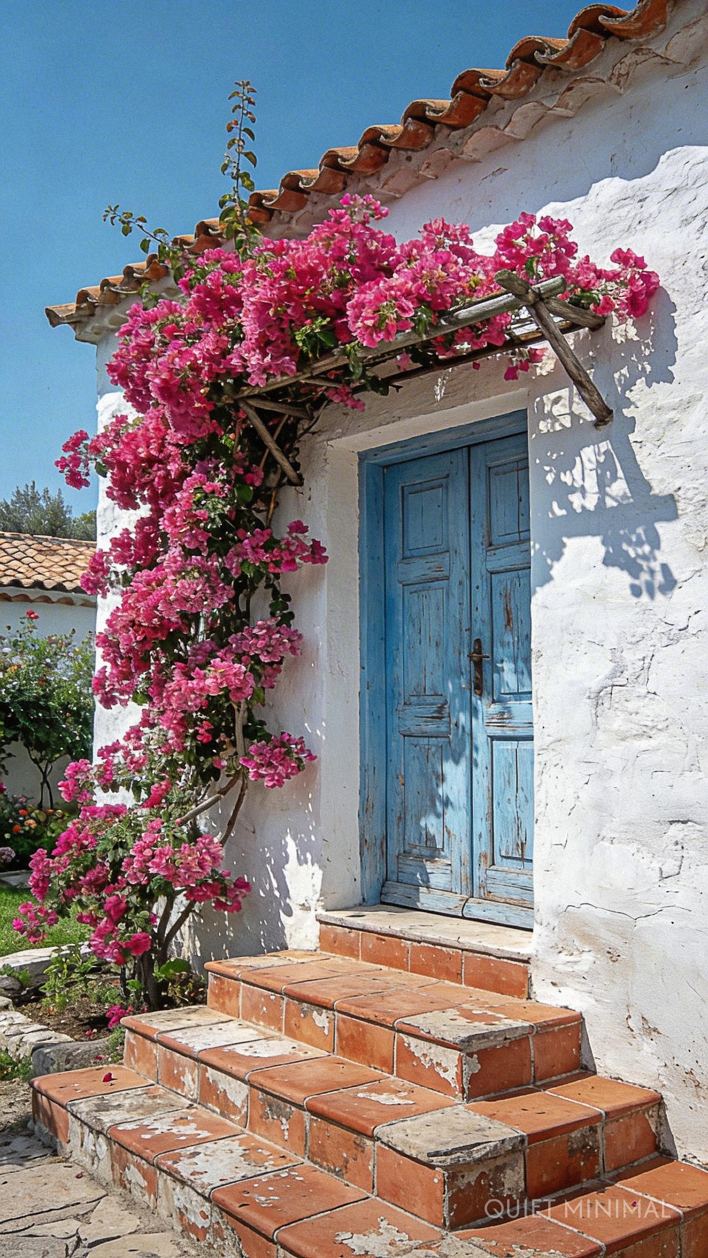 One of the most iconic images of a Mediterranean villa is a cascade of vibrant flowers tumbling over a whitewashed wall. Climbing plants are like living architecture; they soften hard edges and connect the building to the garden. Bougainvillea is the classic choice for its stunning pink or purple bracts, but if your climate doesn’t suit it, consider fragrant star jasmine, climbing roses, or even a lush ivy. Install a simple wooden or iron trellis to guide their growth up a wall, around a doorway, or over a pergola to create a breathtaking natural frame.