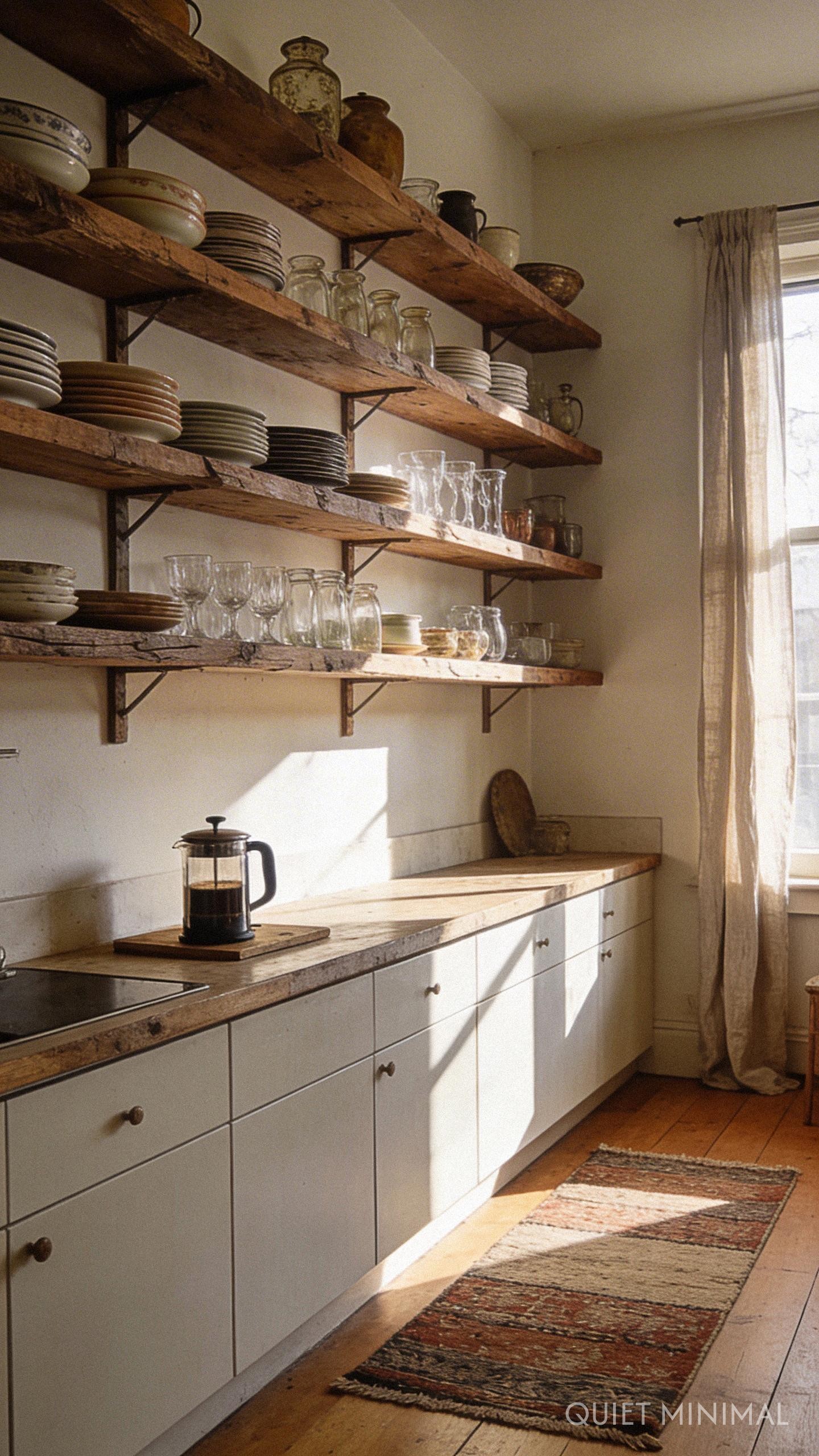 Key Takeaway: Utilize wall height for storage to keep the footprint clear, turning your dishware into a purposeful part of your decor.