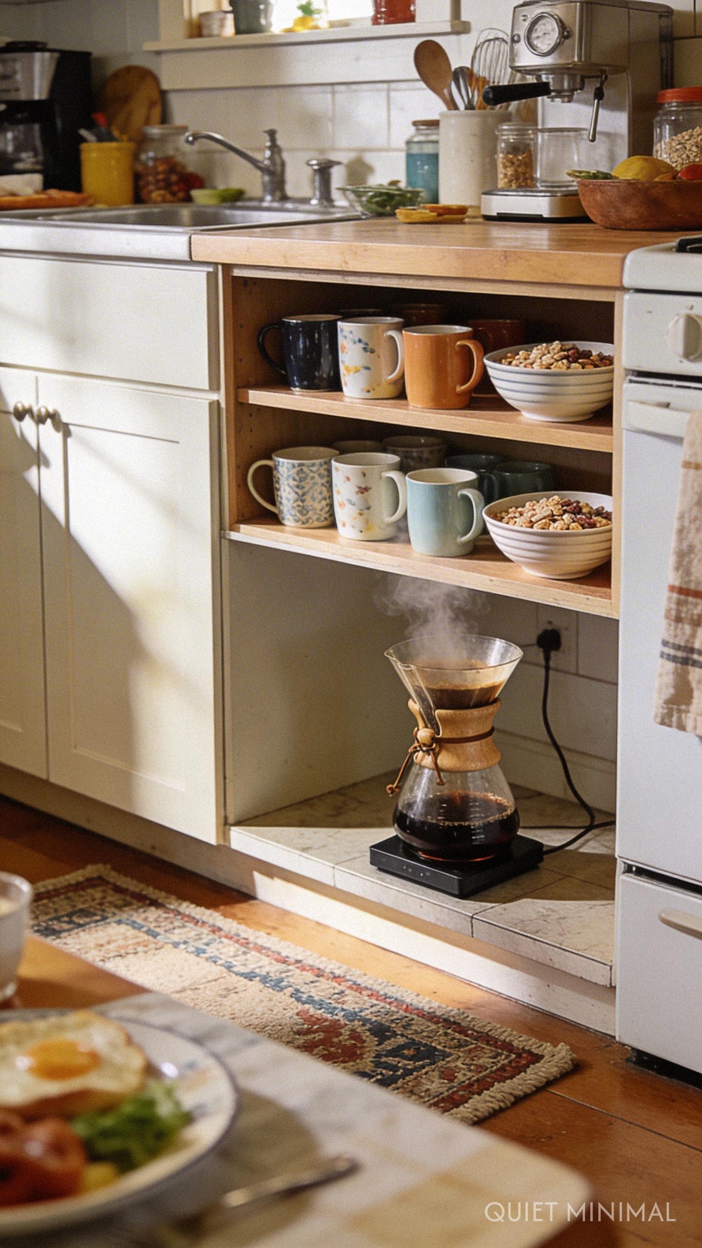 Key Takeaway: Place your “everyday reach” items on the bottom shelves to merge practicality with aesthetics, ensuring your beautiful pieces are actually used.