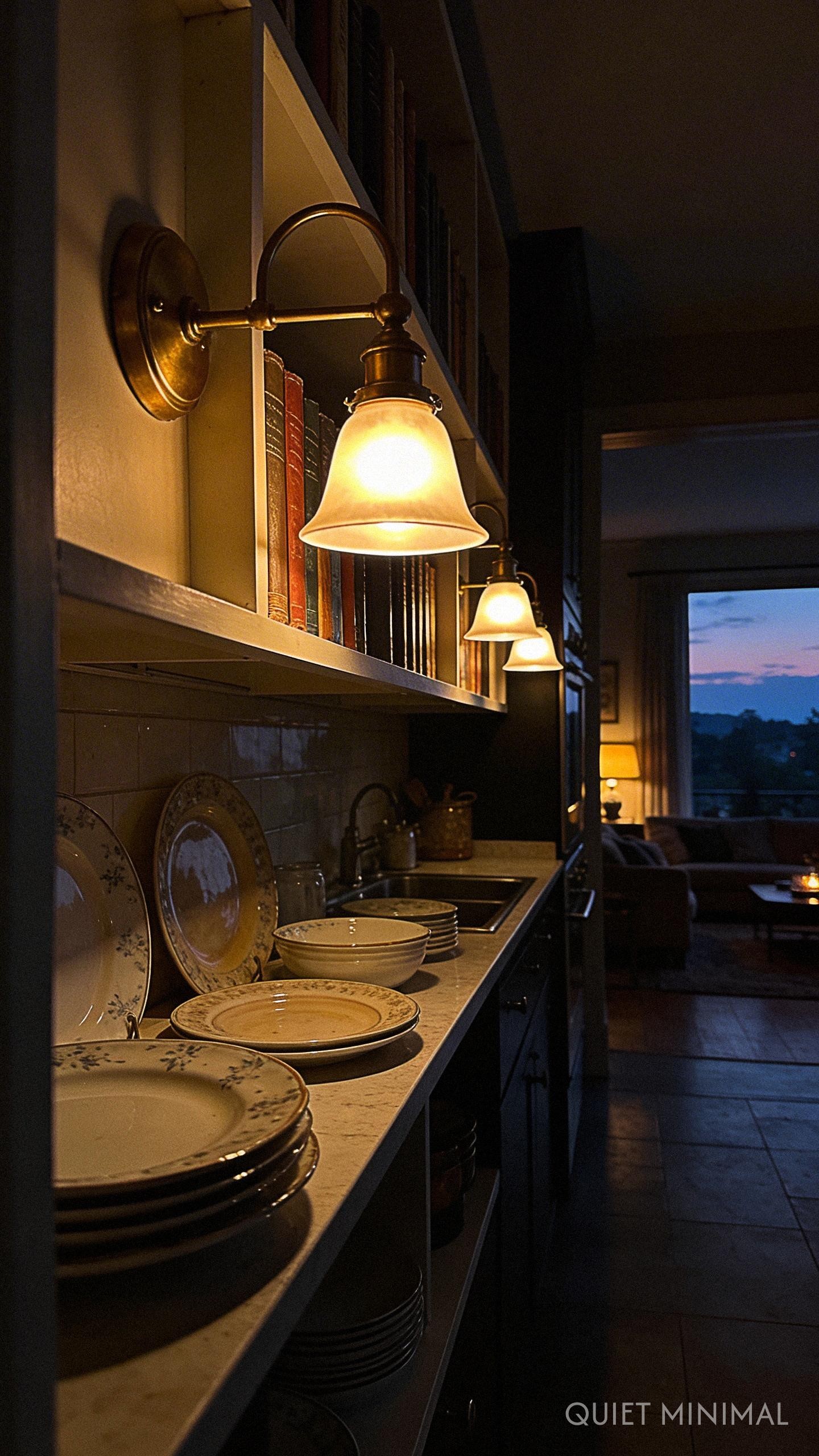Key Takeaway: Use picture lights or under-shelf lighting to spotlight your collection, adding warmth and drama to the kitchen during the evening hours.
