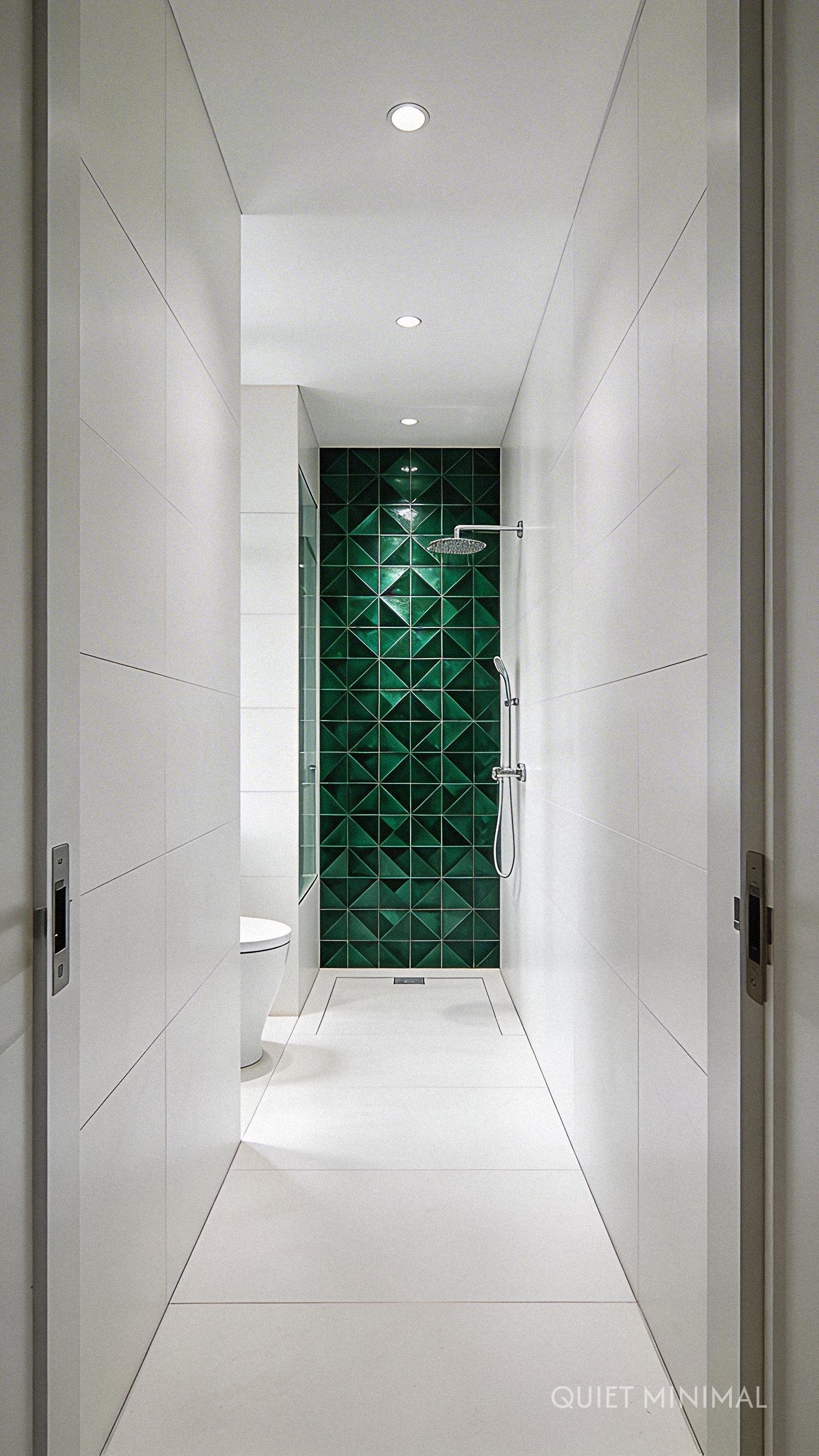 Turn the room’s length into an asset by making the far, short wall a destination. By creating a strong focal point here, you draw the eye through the space, making the length feel deliberate and grand. This can be achieved with a dramatic patterned tile in the shower, a bold coat of paint in a deep, moody color, or even a piece of well-sealed art. It gives the room purpose and direction.