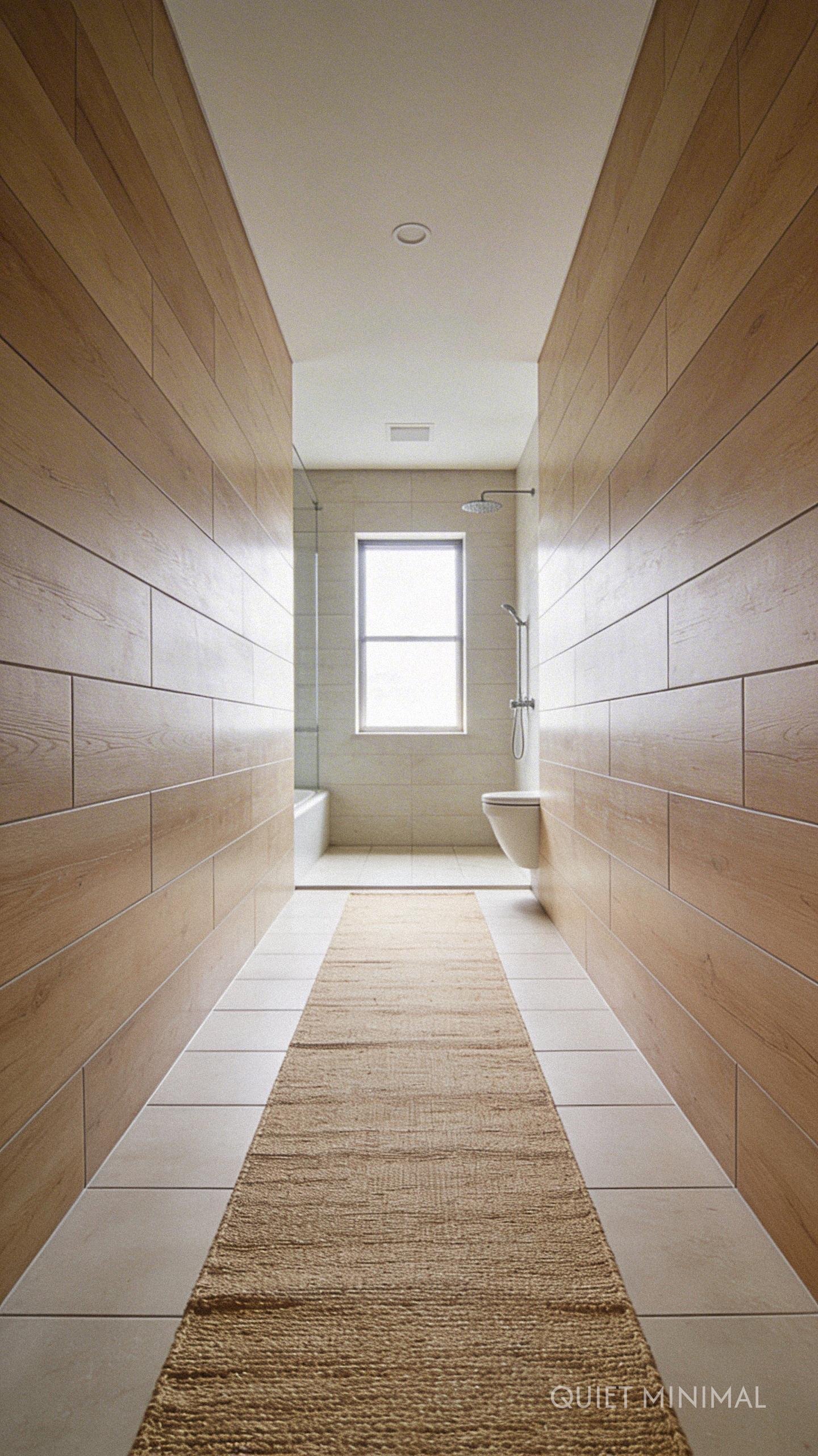 Key Takeaway: Install flooring planks or tiles lengthwise to accentuate the room’s length, creating a clean, gallery-like pathway that enhances the flow.