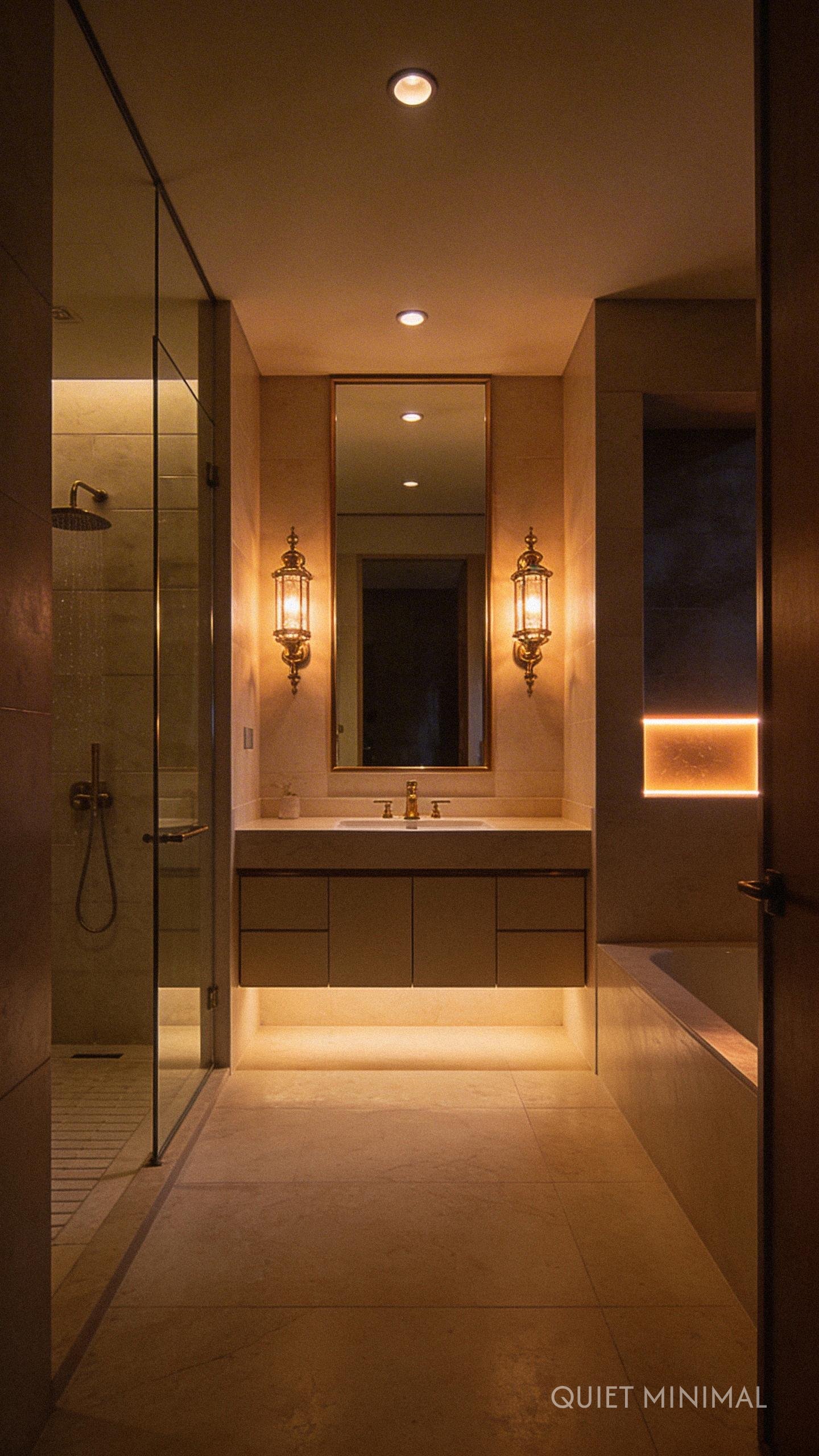 Key Takeaway: Combine at least two types of lighting (e.g., vanity sconces for tasks and a central fixture for ambience) to make the space functional, inviting, and feel expertly curated.