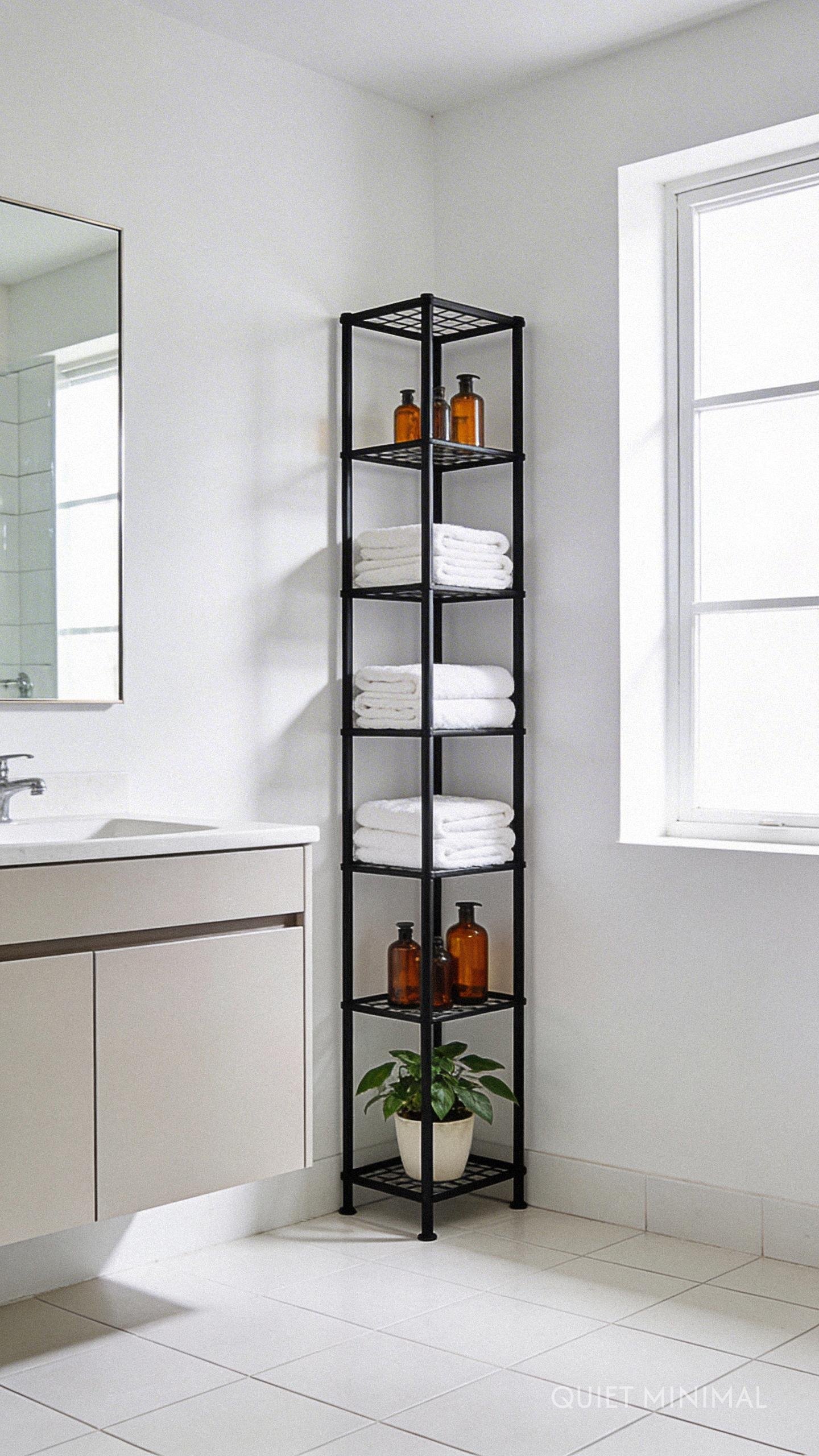 In a narrow layout, every inch of floor space counts. Instead of a wide, bulky cabinet, draw the eye upward and utilize vertical space. A tall, slender linen tower, a set of minimalist floating shelves, or a chic ladder shelf can hold towels, baskets, and skincare products without encroaching on the precious walkway. This keeps countertops clear and maintains an organized, uncluttered environment for your routine.