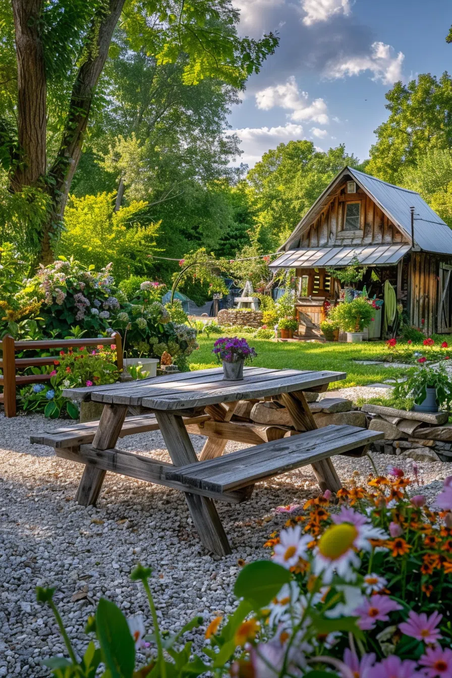 Incorporating rustic elements into your landscaping can instantly infuse your backyard with a charming, country feel. Think about adding weathered wood benches or a whimsical birdhouse.