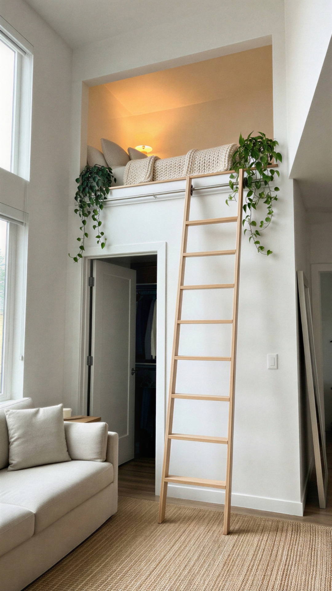 Solution: Build a secure platform above a closet or hallway. Conceal the access ladder in a narrow vertical cabinet or make it a sliding library ladder that only aligns with the opening when needed.