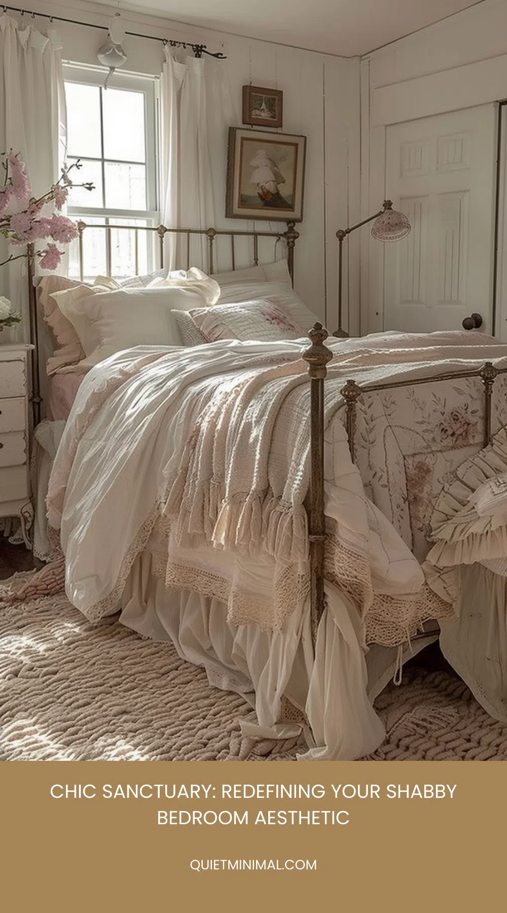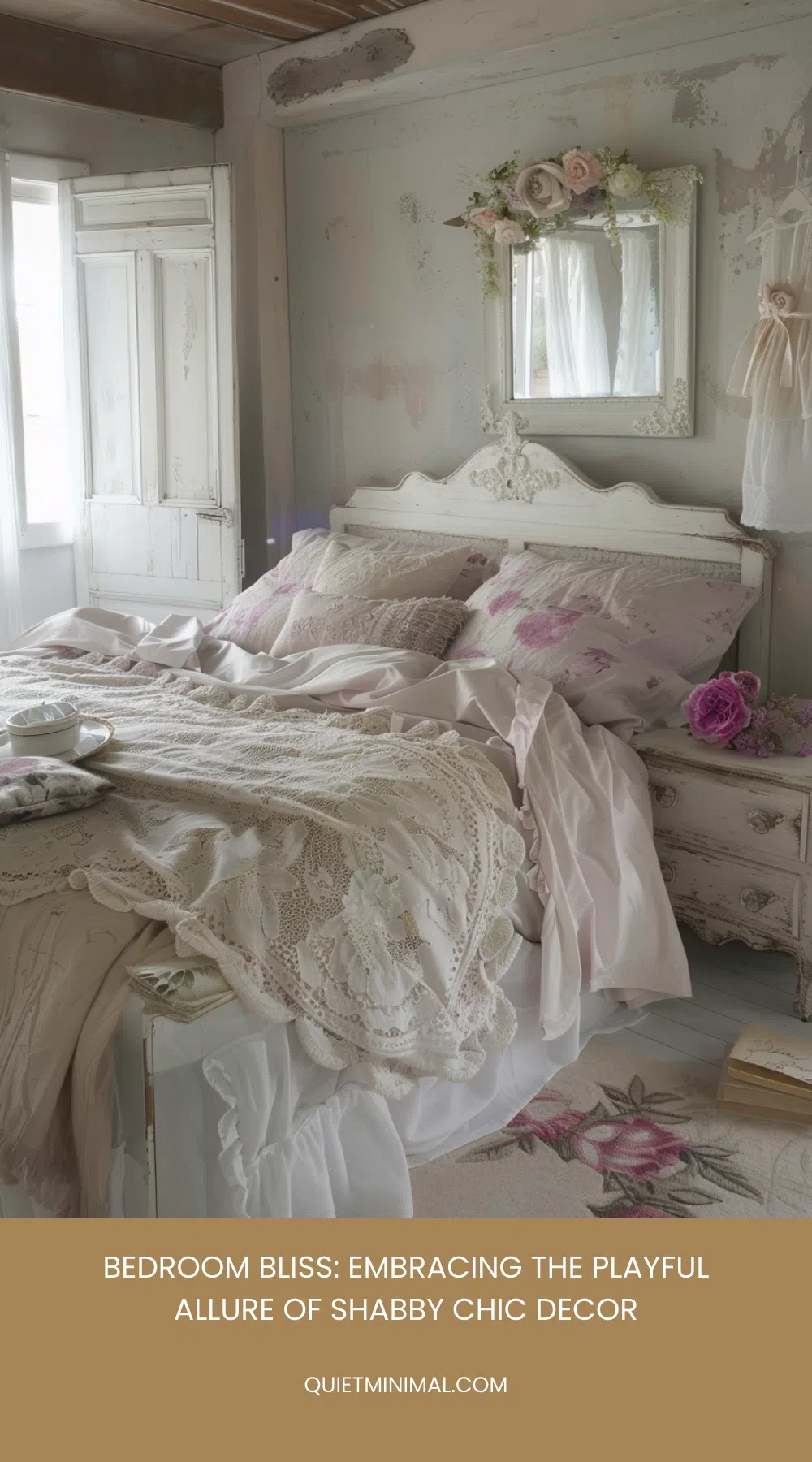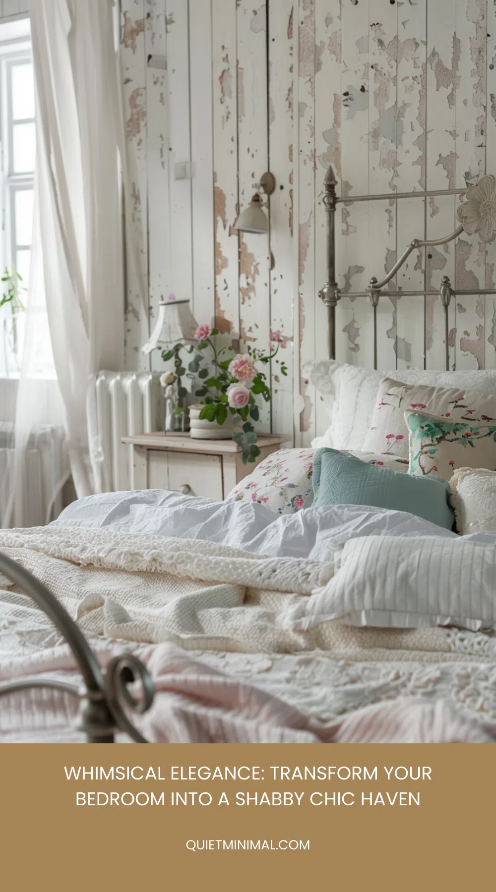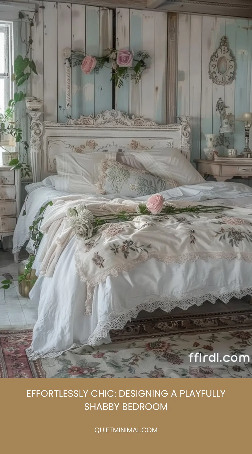 - Opt for distressed, vintage furniture like wrought iron bed frames and antique dressers to create a shabby chic bedroom.