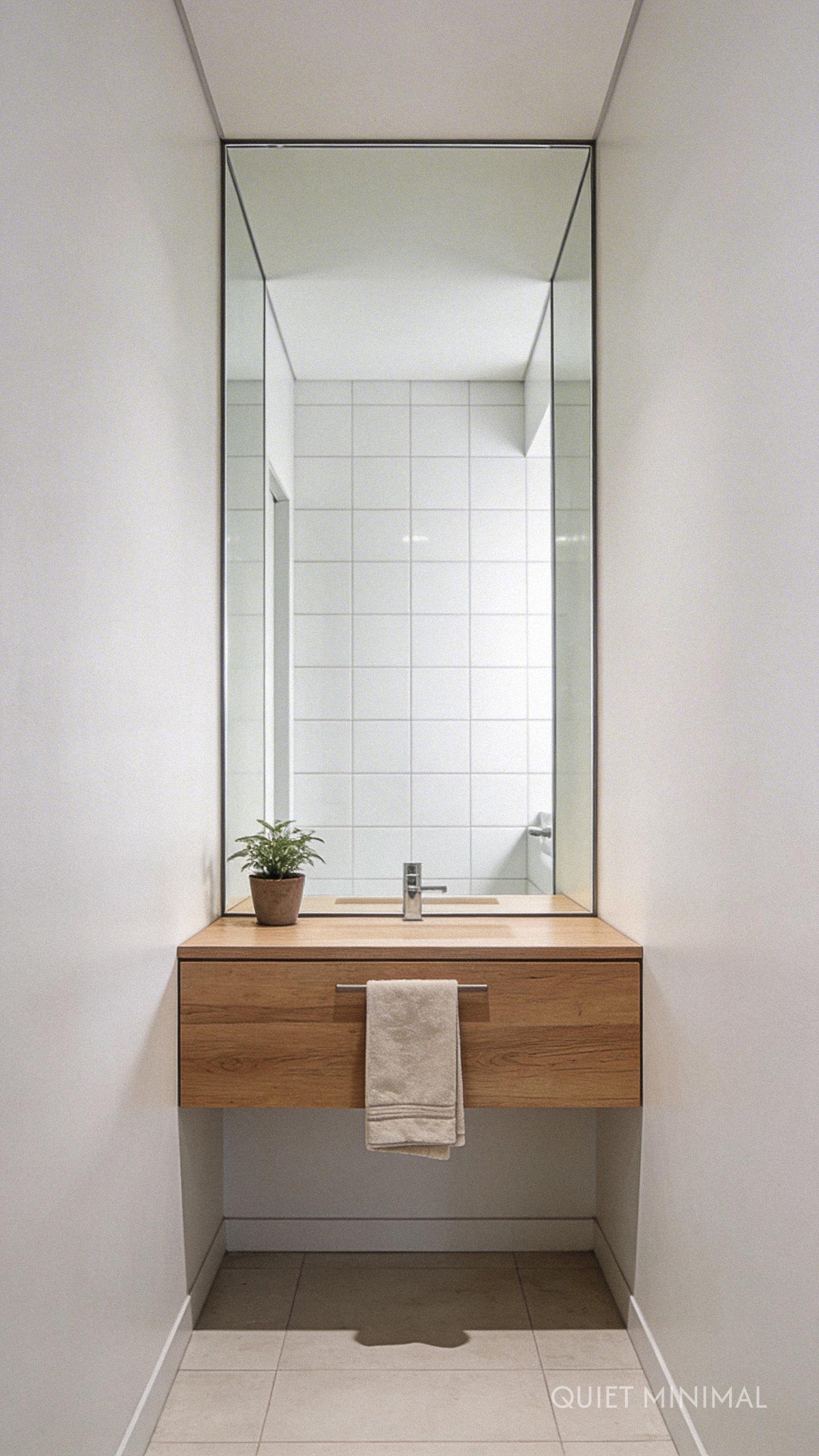 Key Takeaway: A wall-to-wall mirror over the vanity is the single most effective trick for visually doubling the width of a narrow bathroom.