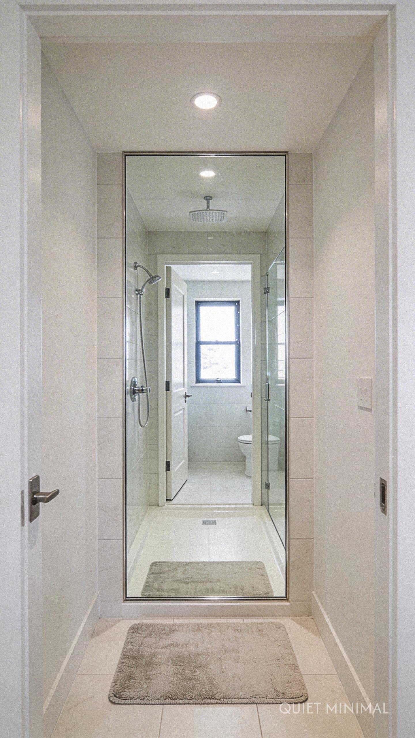 Think beyond the vanity. A mirrored panel on a shower door or wall is an unconventional yet highly effective strategy. Placed on the wall facing the bathroom entrance, it reflects the entire room and any natural light from a window as soon as you walk in. This makes the space feel instantly larger and brighter. It also cleverly conceals the shower area when not in use, creating a more seamless and unified look throughout the bathroom.