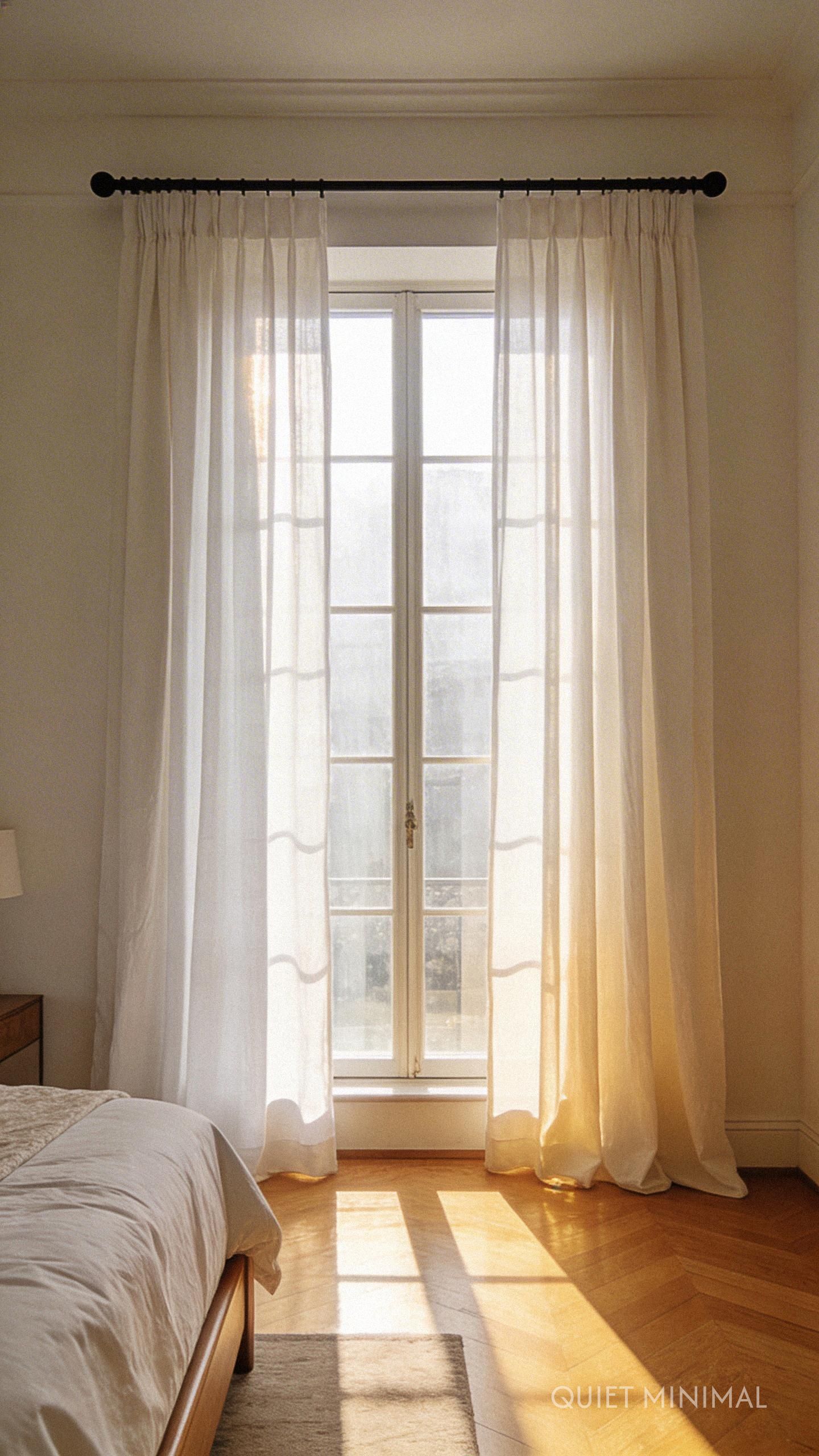 Key Takeaway: High-quality window treatments, like floor-length linen curtains, add architectural elegance and a layer of softness that cheap alternatives can’t replicate.