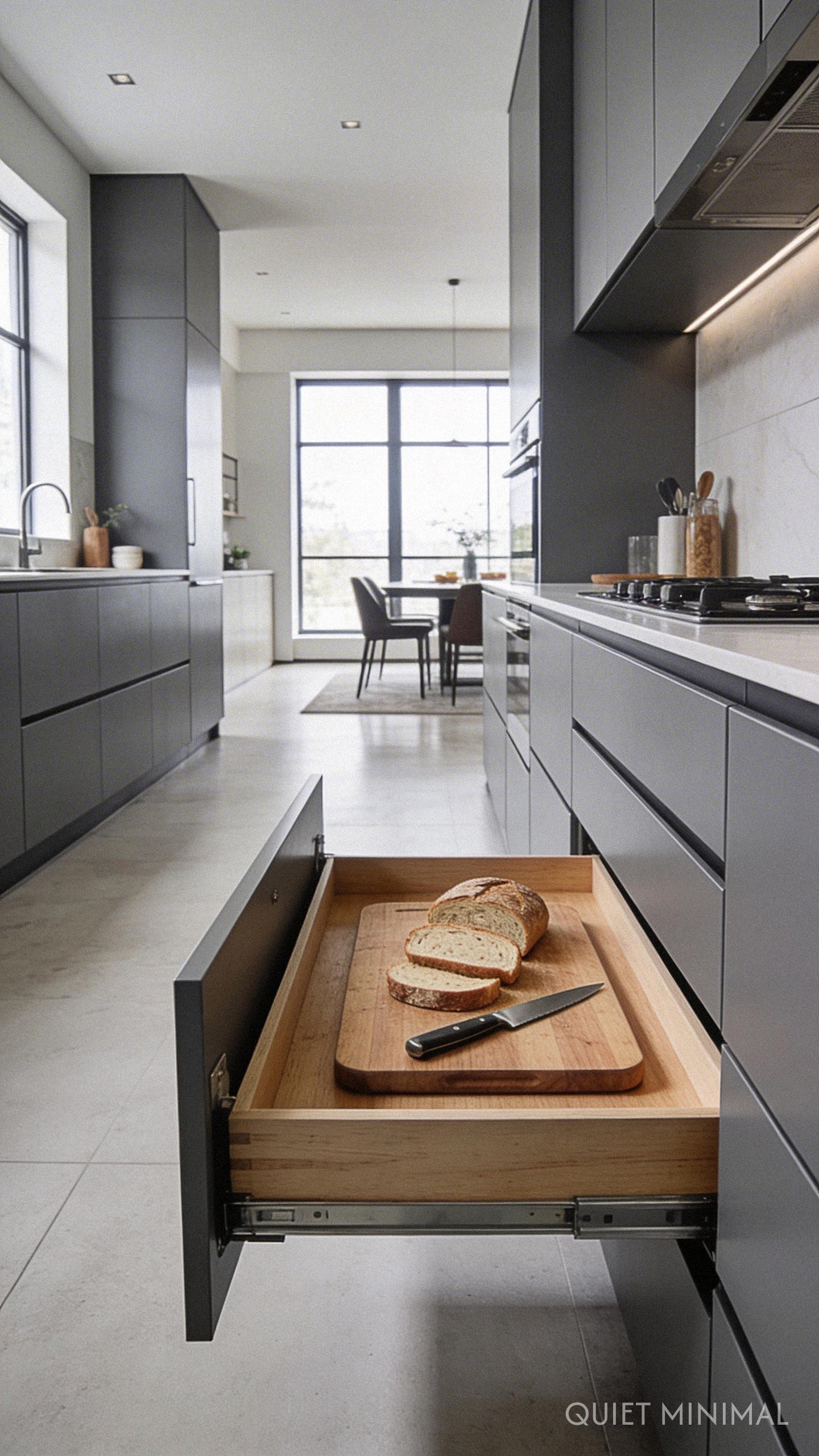 If you are planning a renovation or a cabinet refresh, consider the hidden pull-out board. This acts like a drawer but has no sides, offering a slide-out surface specifically for chopping or staging ingredients. It is the ultimate “style and substance” secret weapon. When closed, it is invisible, maintaining the sleek lines of your cabinetry. When open, it functions as an instant extension of your countertop, perfect for the avid cook who needs to separate produce prep from meat prep in tight quarters.