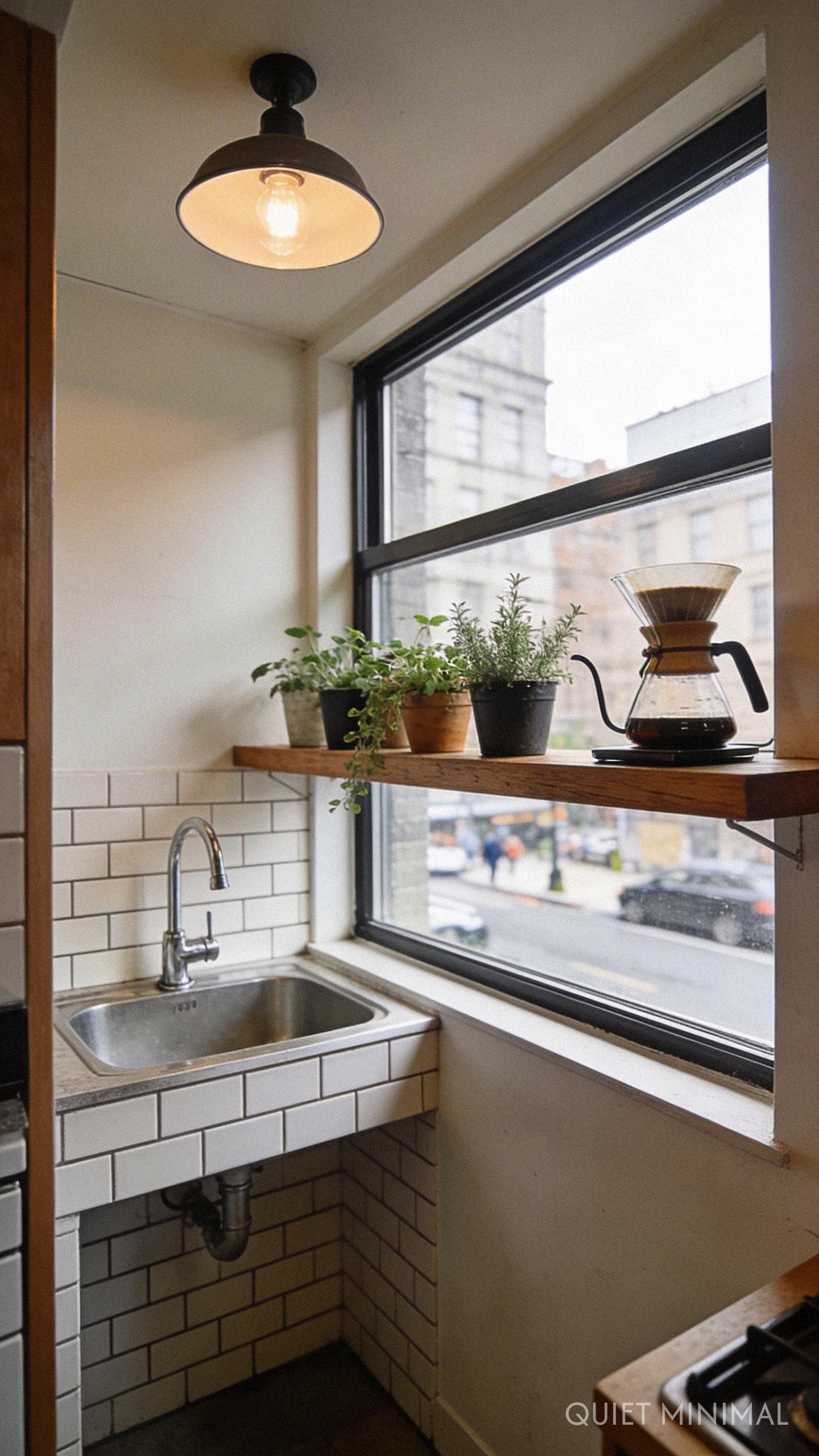 If you are lucky enough to have a kitchen window, you have an opportunity to merge your love for “The Sanctuary” with functionality. Often, window sills are too narrow to be useful. By installing a shelf extender or a custom piece of wood flush with the sill, you can widen this ledge significantly. This becomes the perfect spot for your herb garden (fresh basil for that pasta), your morning pour-over station, or a cooling rack for baked goods, keeping your main counters clear for heavy lifting.