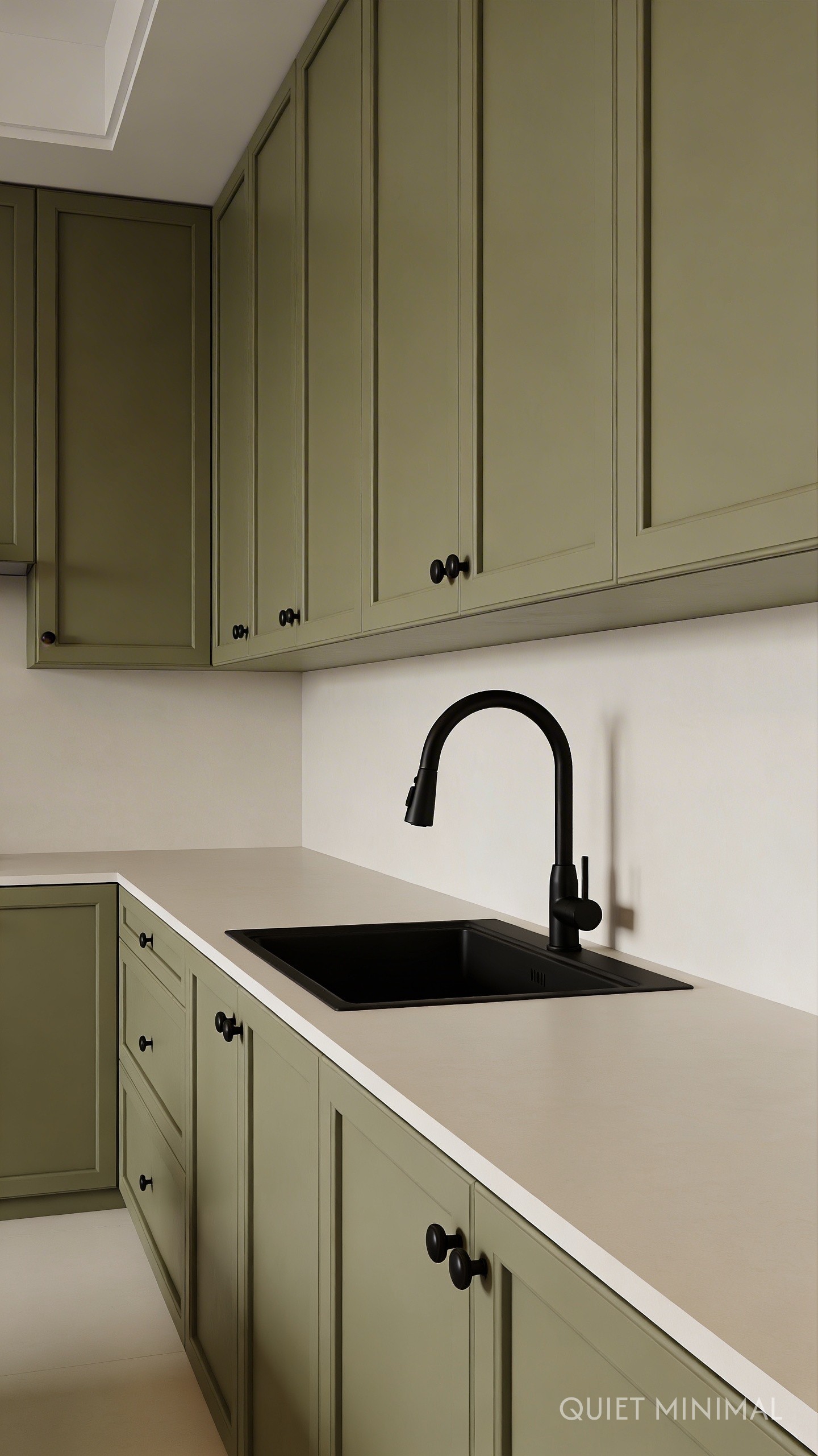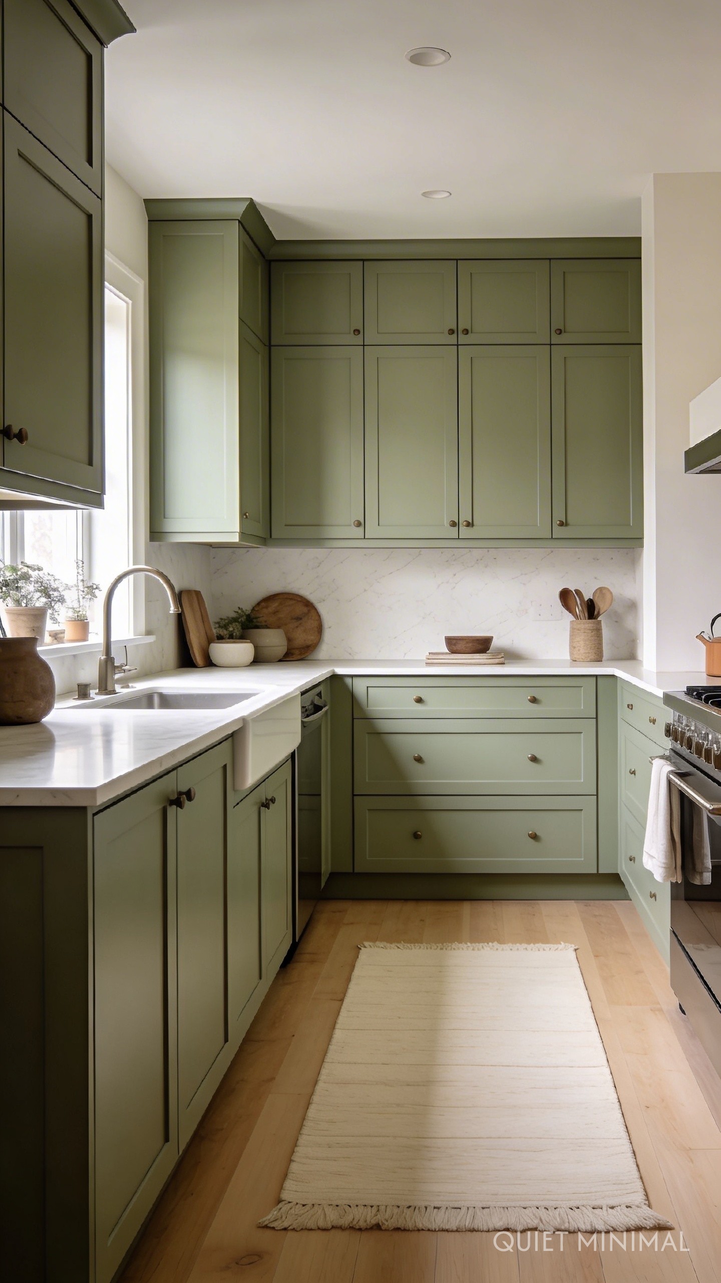 Key Takeaway: Painting cabinets in a muted shade like sage or olive green is a powerful way to infuse your kitchen with a calming, nature-inspired aesthetic.