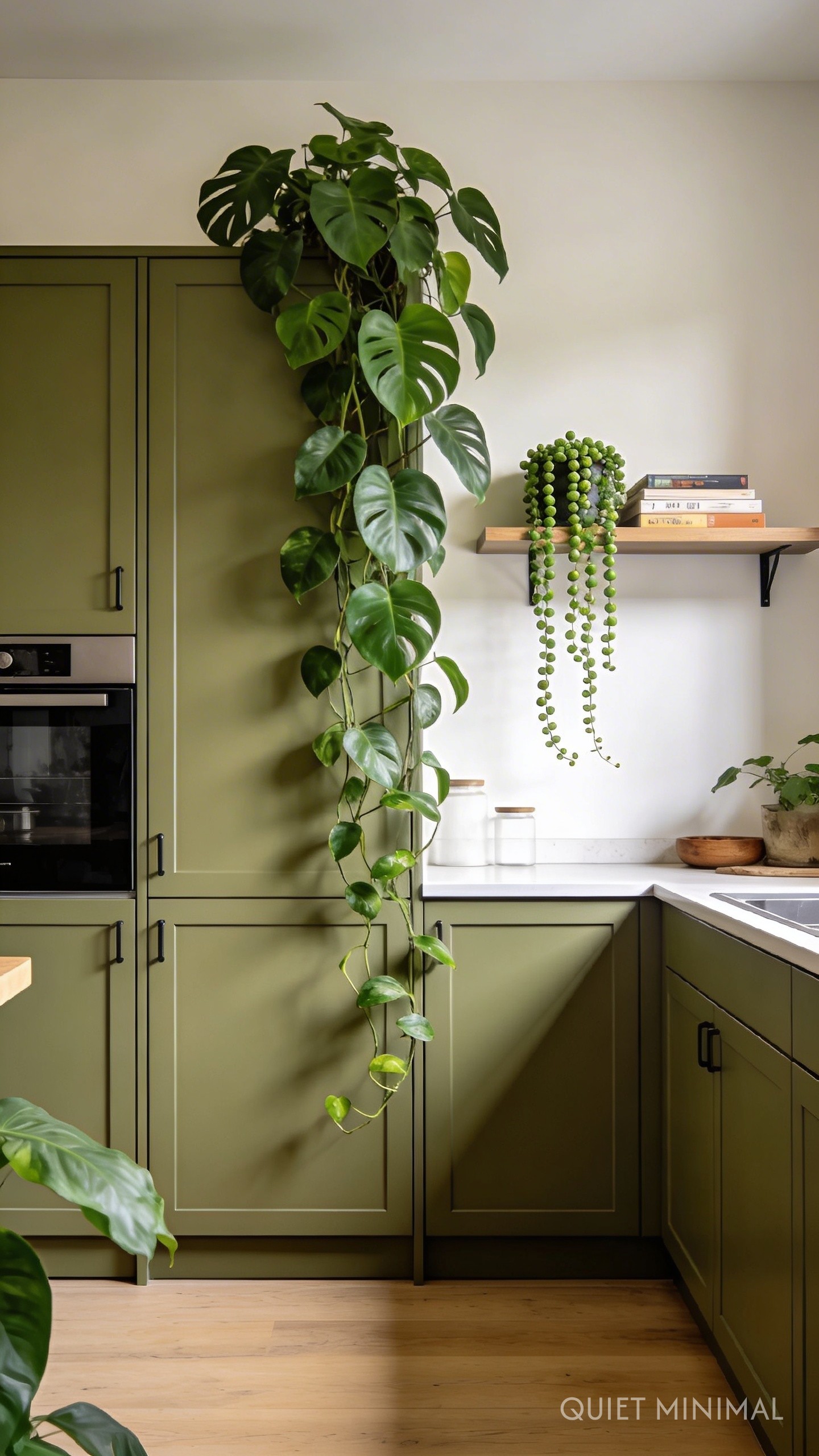 The final, essential touch for any earthy-toned space is life itself. Bring the outside in with an abundance of greenery. A small pot of basil or mint on the windowsill is perfect for both cooking and aesthetics. A trailing pothos or philodendron cascading from the top of a cabinet adds movement and a lush, vibrant feel. Plants not only purify the air but also provide the most authentic connection to nature, completing your kitchen’s transformation into a calm, breathing oasis.