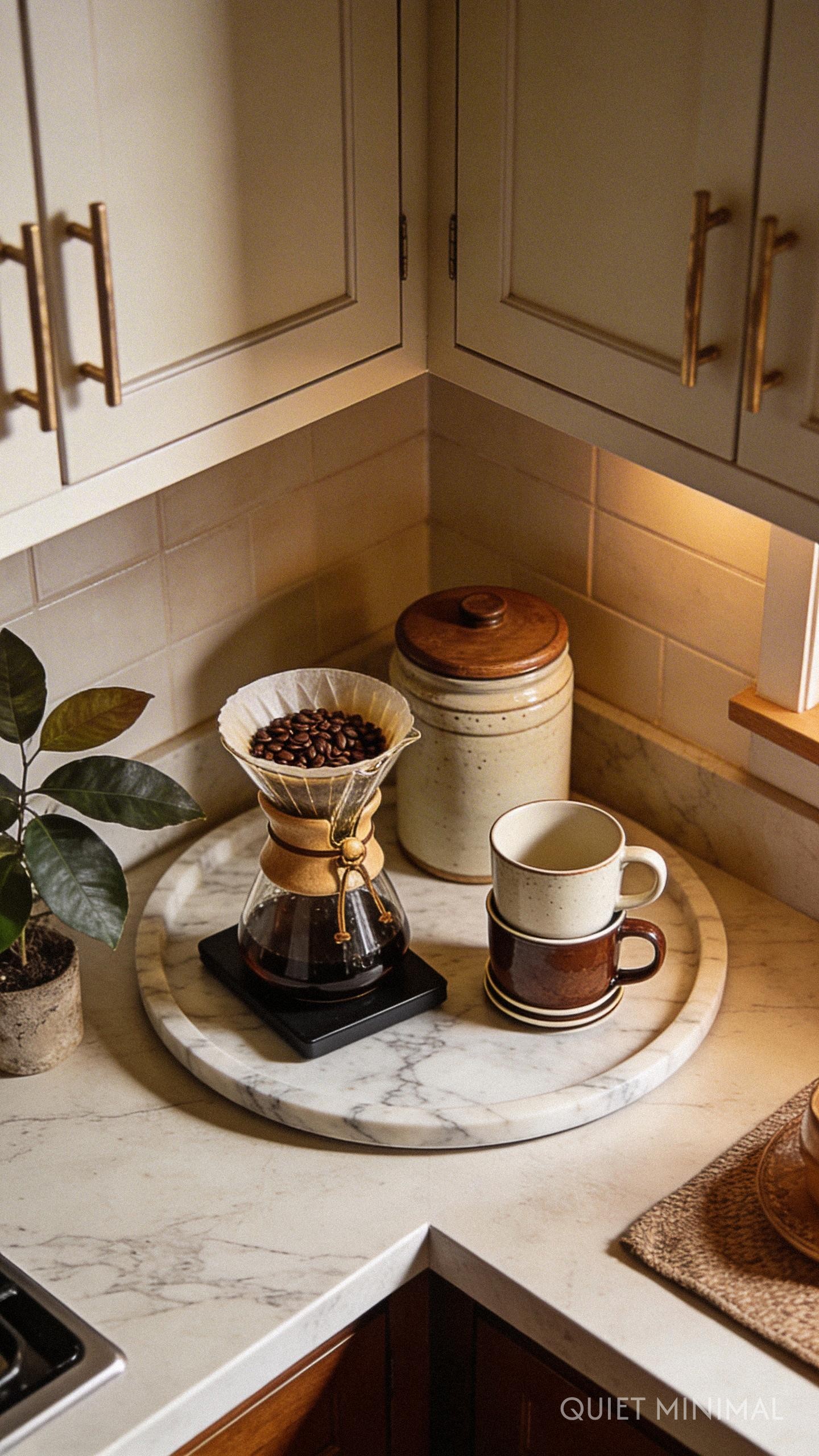 Creating small, dedicated zones for daily rituals instantly makes a home feel more intentional and comforting. Style a corner of your counter as a dedicated coffee or tea station. Use a beautiful tray—perhaps marble or wood—to corral your essentials. Display your favorite mugs on a small shelf or a simple mug tree. Store coffee beans, tea bags, and sugar in attractive, matching canisters. This small, curated nook becomes a destination for a quiet morning moment or a warm offering for guests, making the entire kitchen feel more hospitable.